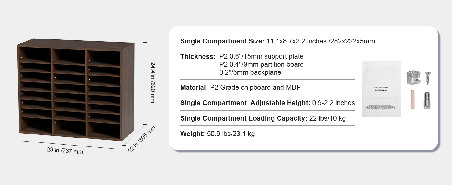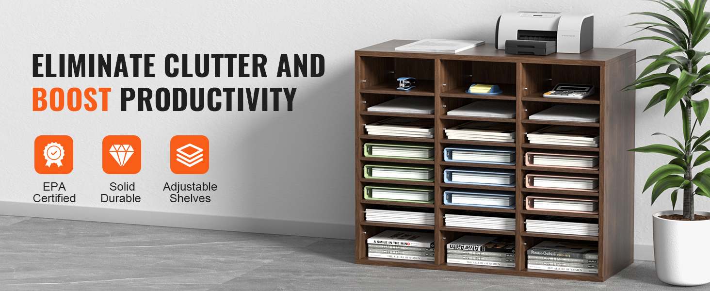 - Maximieren Sie Ihren Platz: Verabschieden Sie sich von überfüllten Schreibtischen mit dem 29 x 12 x 24,4 Zoll / 737 x 305 x 620 mm Holz-Literatur-Organizer. Er verfügt über insgesamt 24 Fächer, die in 8 Reihen und 3 Spalten angeordnet sind. So haben Sie ausreichend Platz, um Bücher, Dokumente, Zeitschriften, Papiere und andere Materialien aufzubewahren und zu organisieren. So halten Sie Ihren Arbeitsplatz ganz einfach ordentlich und übersichtlich.