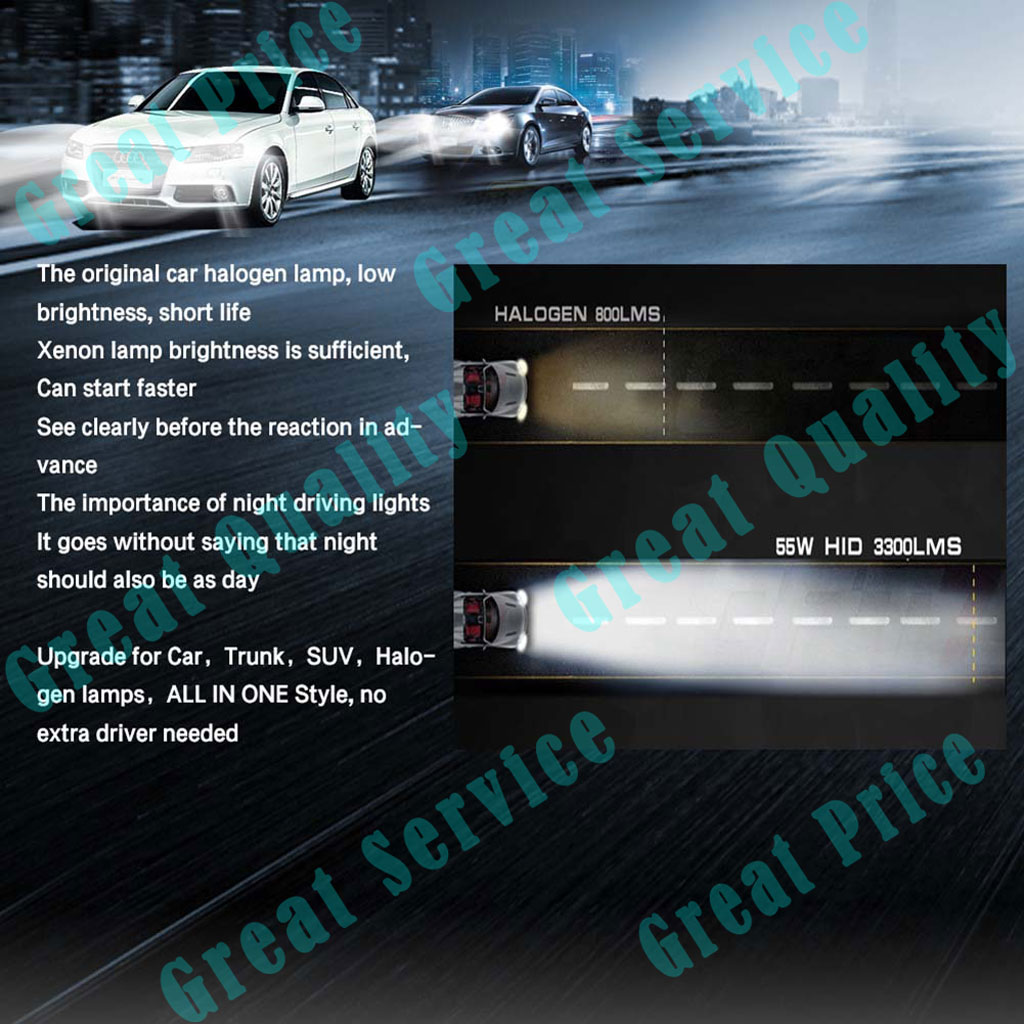 | 55W DC 12V Car HID Xenon Headlight Conversion Kit Replace Halogen Front Lamp