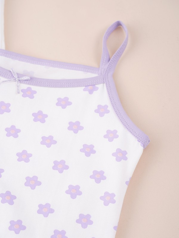 Girl’s bra vest with elastic hem provides a good support to the chest. A bow and lace trim adds cute elements.