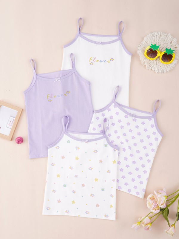 Girl’s spaghetti straps camisole with a cute bow, 4 different colors in a pack to meet the different needs.