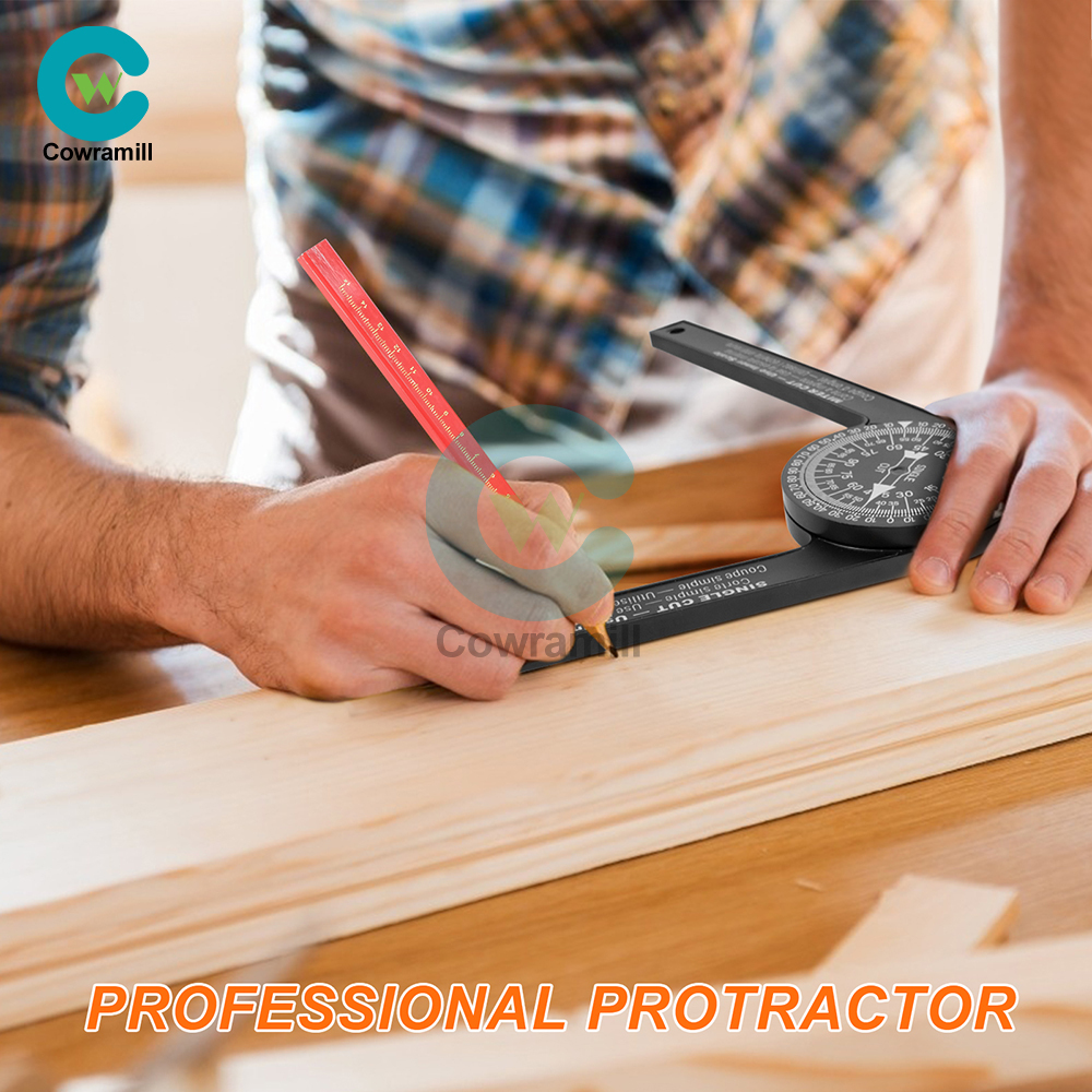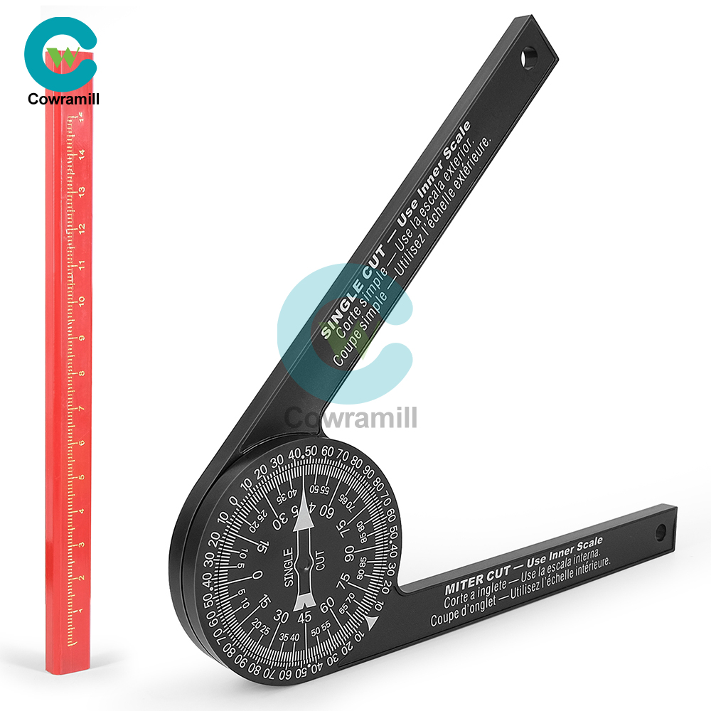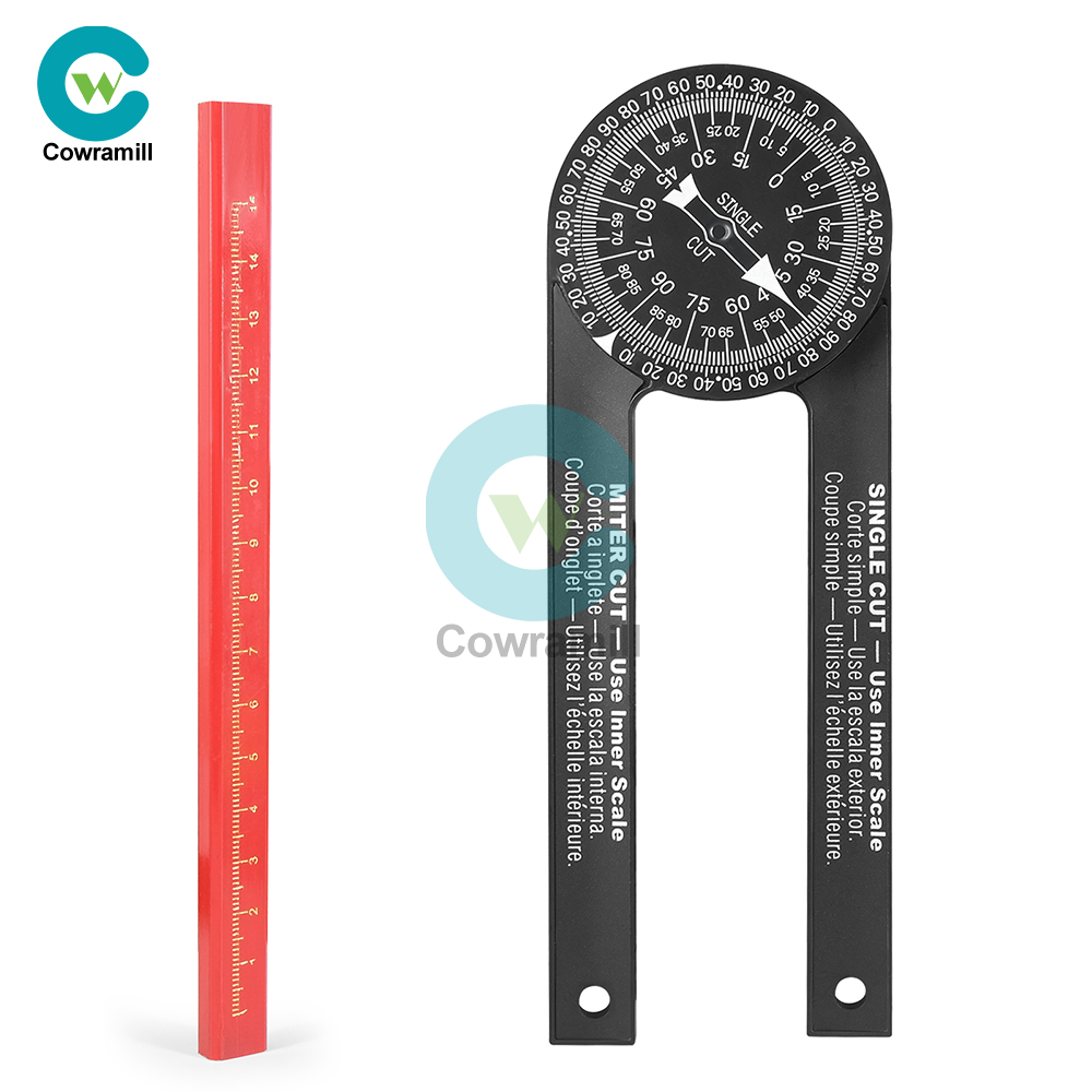 Woodworking Scale Mitre Saw Protractor with Marking Pencil Accurate Carpenter Angle Finder Plumber Measuring Meter Gauge Tool