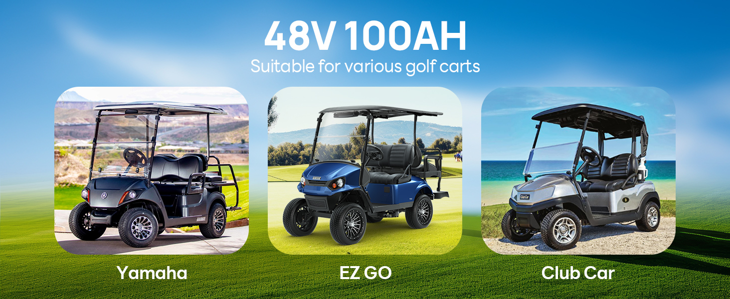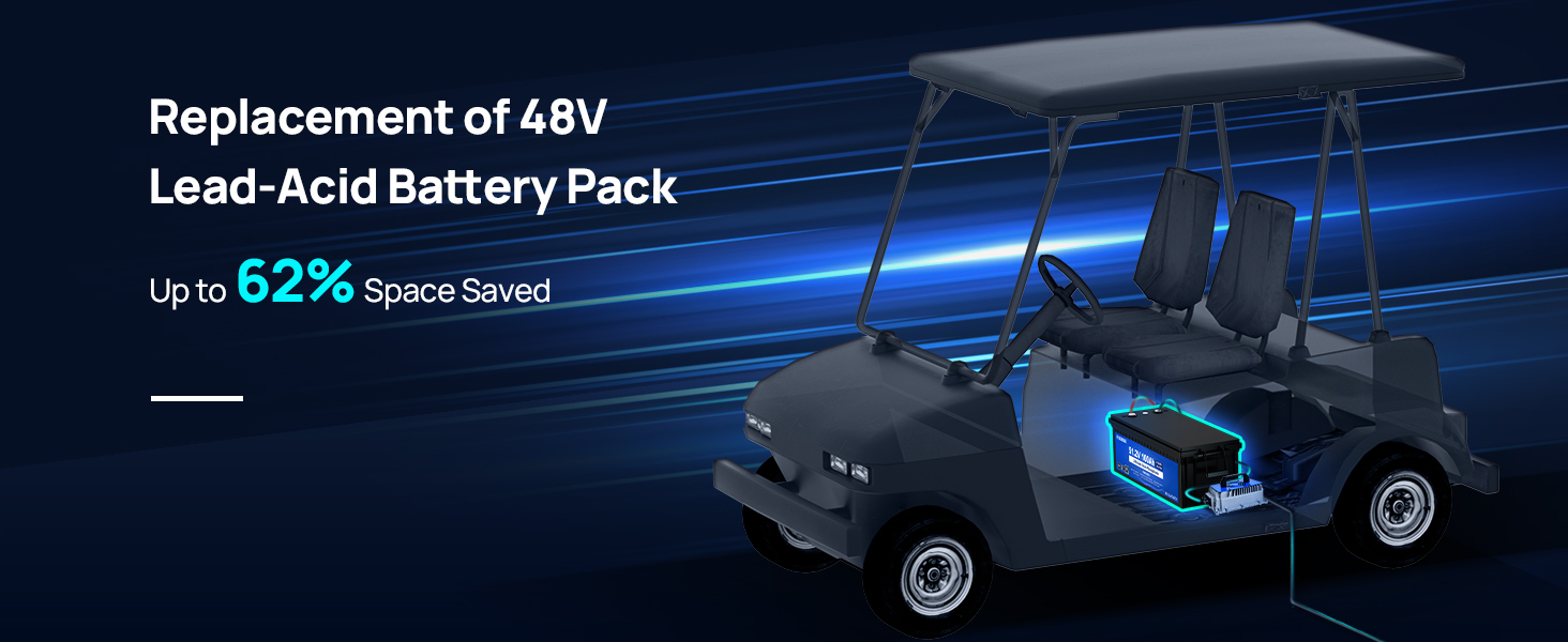 Designed to power a range of 48V applications including golf carts, like YAMAHA,Club Car, EZ GO, lawnmowers, RVs, trolling motors, marine vessels, and off-grid systems. Its stackable design and easy connectivity make it a space-efficient solution for your storage needs.