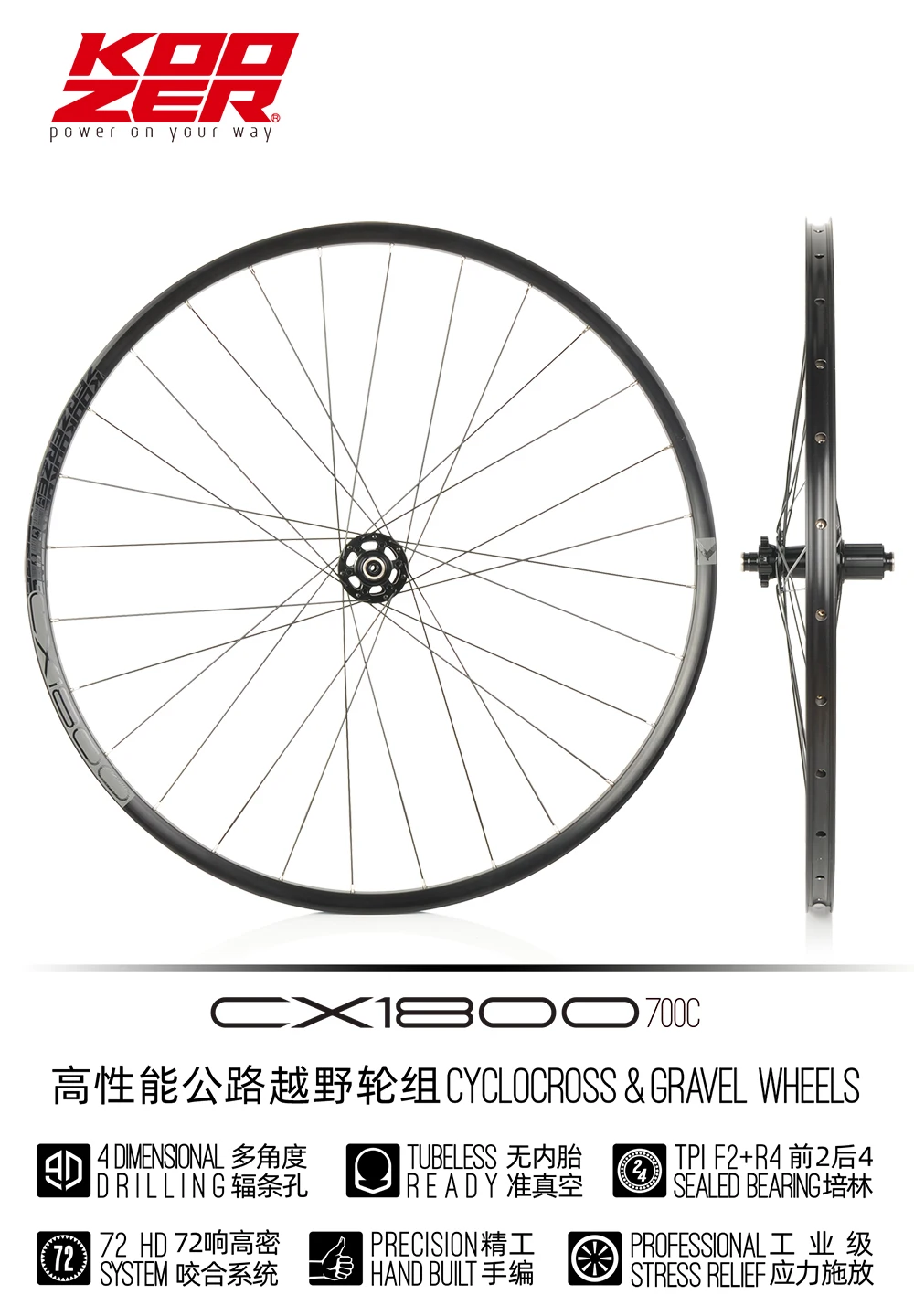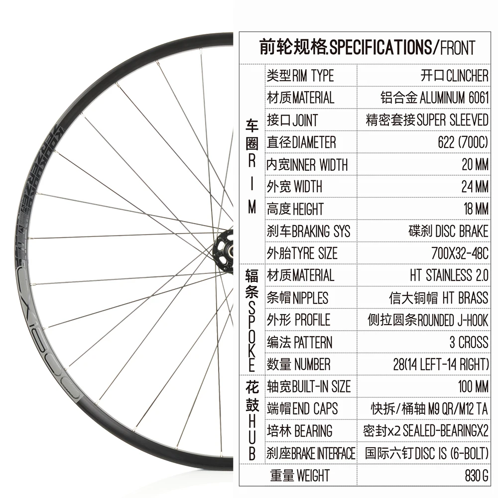 Super light Gravel & CX road wheelsetCX1800, 4 dimensional drilling,Aluminum 6061,tubeless ready rim, CX420 hub with 4 sealed-bearing, HT spoke, precision hand bult and professional stress relief,reliable performance, we supply front hub 5x100 QR/12x100mm TA, rear hub 5x135 QR /12x142mm TA with HG cassette body with tool-free conversion, and 2 colors sticker to meet the individual needs of most rider.