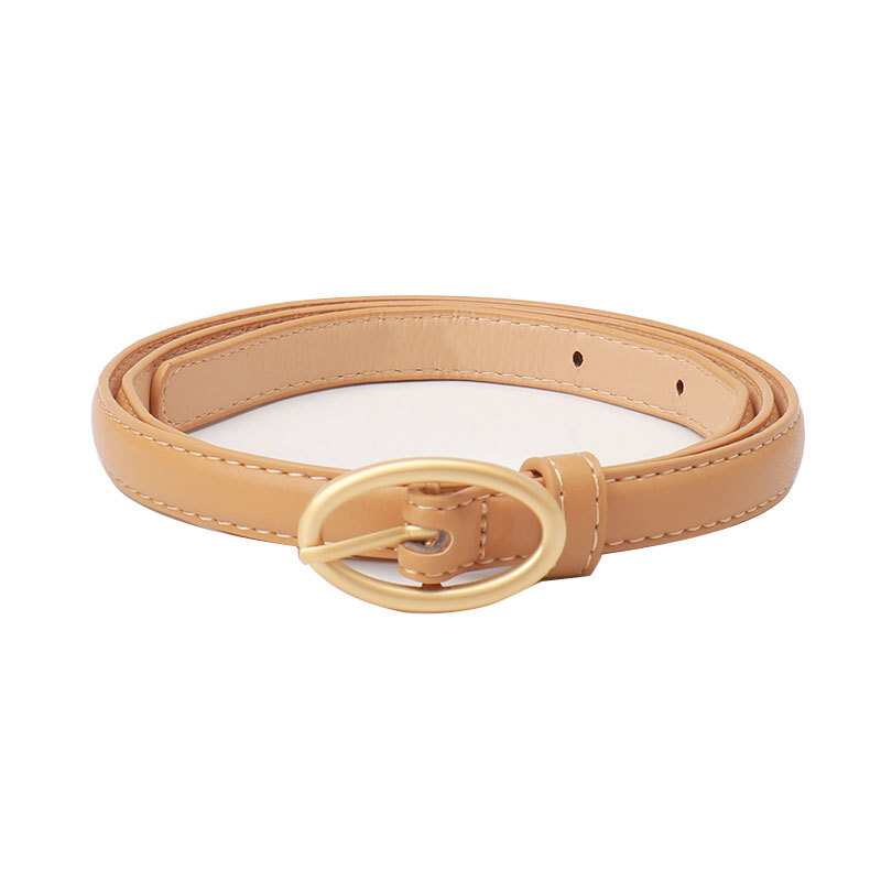 Women Metal Oval Buckle Skinny Faux Leather Belt Dress Jeans Corset Waistband