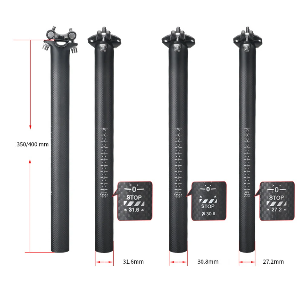 Lightweight & Durable: This seat post is made of T800 carbon fiber tube , lightweight, high strength and fatigue resistance