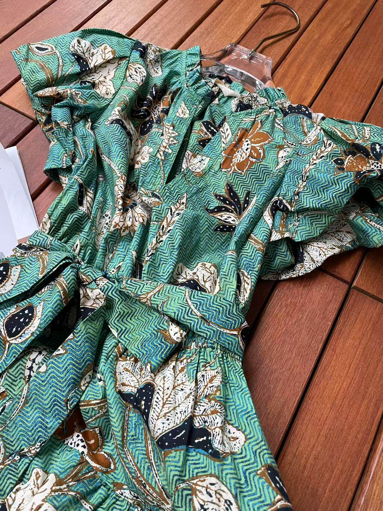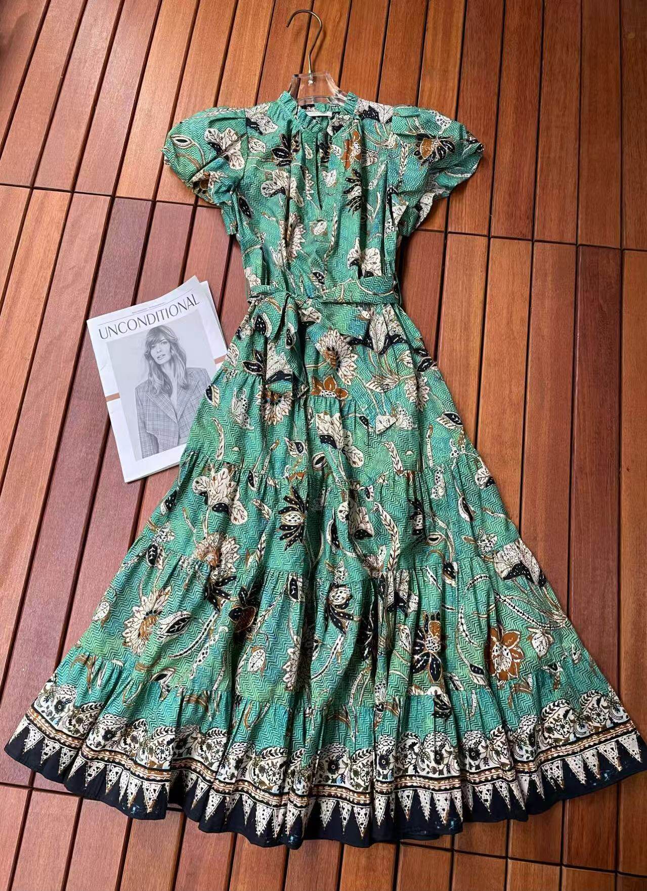 Ulla Johnson Bubble Sleeve Waistband Cotton Printed Mid Length Dress Women 2-8