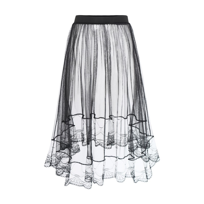Lace trim details bring a delicate and feminine charm, enhancing the overall elegance of the skirt.