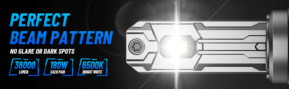 【Super Bright】---Experience a groundbreaking leap in brightness with the N90 series headlights. Utilizing 12PCS 6063 LED chips per side, boasting an impressive 180W output and, 36000LM per pair. These lights emit a more intense illumination, surpassing halogen lights by a remarkable 1200% in brightness and standard headlights by 900%!