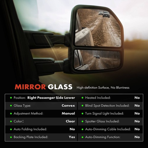 Note-2: It fits the model on Passenger Lower Side, Color: Clear, with Backing Plate, with Manual Glass Adjust