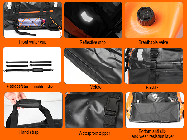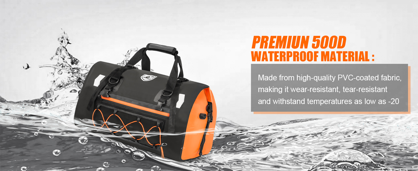 ✔ 500D PVC Construction – Heavy-duty, seam-sealed welding and roll-top design keep your gear 100% dry even in heavy rain, extreme heat, or freezing conditions. Unlike leather, it won’t crack or degrade under sun exposure.