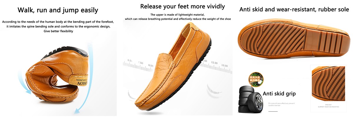 Notes: 1.Please allow 1-2cm error due to manual measurement. Please make sure you do not mind before you bid.2.The colors may have different as the difference display, please understand. 3.Some shoes will have slight smell because they come fresh off factory, so if you receive the odorous shoes please put them in the vent. 4.Some tags’ UK/US size number may be different from our tag’ size/ EUR size, please take our size chart as the standard reference. Easy Slip on Design Slip on design without lace up makes it easier to put on and take off the mens casual loafers when you are in a hurry. Light Weight and SoftCasual men loafers are lightweight, soft that you won't feel tired even walk for a whole day. Durable Non-slip Rubber SoleDurable rubber sole of the casual loafers offers you anti-slip protection, making each of your walk steps steadily and firmly. Multiple ApplicationsOCCASIONS: The casual loafers shoes for men are perfect for outdoor and indoor activities, such as travel, walking, running, walking a dog, etc.