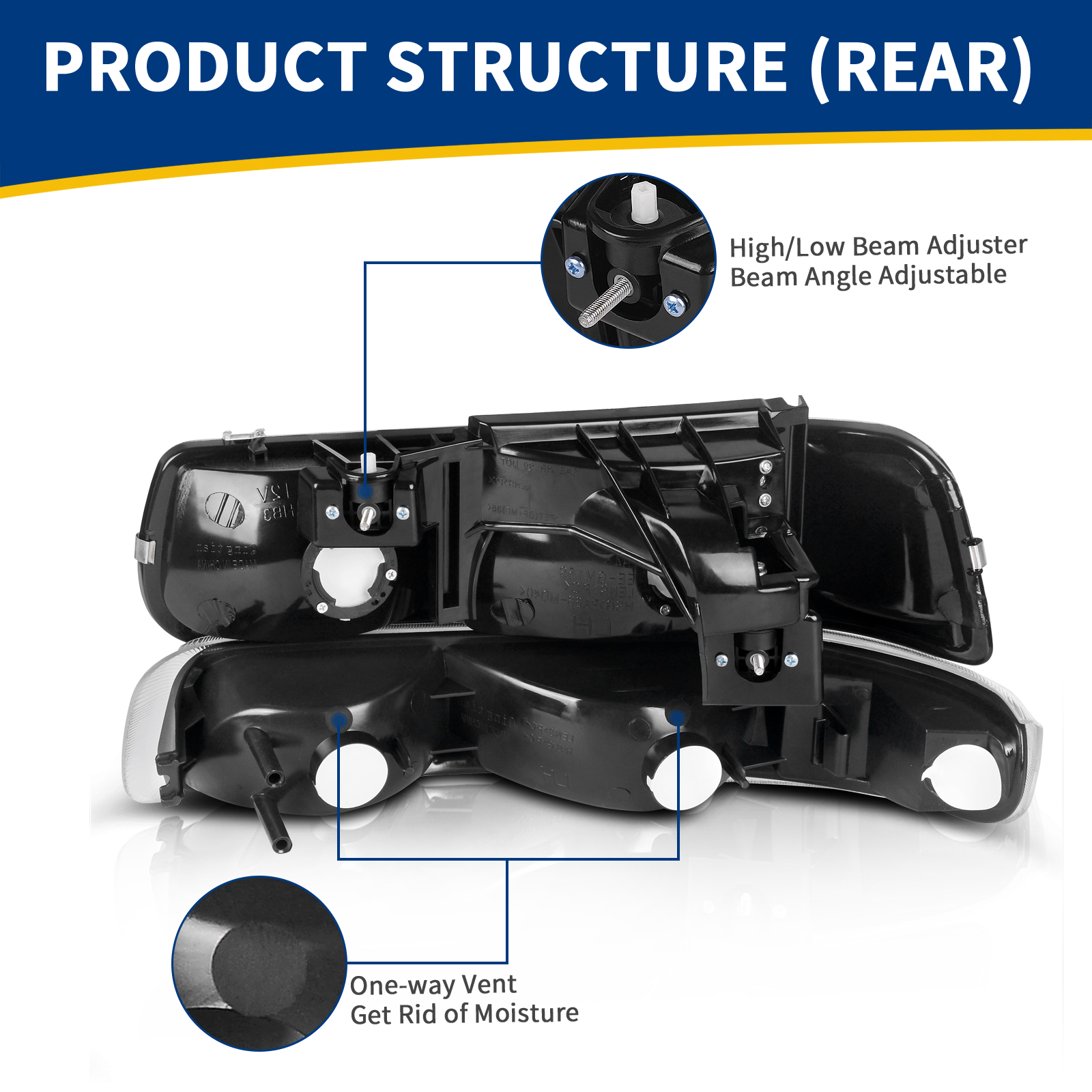 Note: Our warehouse has two version of these headlights, but they are the same factory and function, we will ship them randomly, thanks for your understanding.
