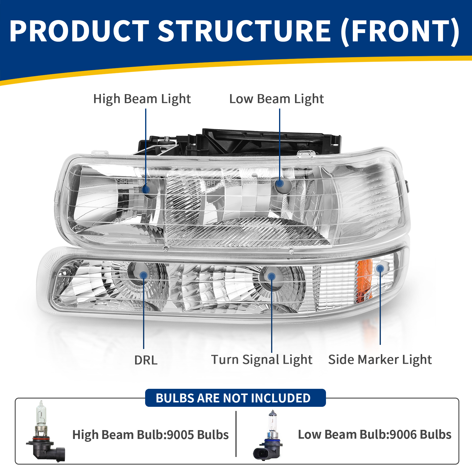 Headlights + Bumper Signal Lamps For 99-02 Chevy Silverado 00-06 Suburban Tahoe
