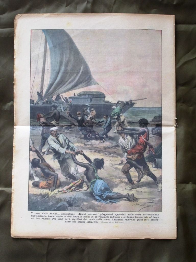 Il ratto delle Sabine... australiane. Alcuni pescatori giapponesi, approdati sulle coste settentrionali dell'Australia, hanno rapito a viva forza le donne di un villaggio indigeno e le hanno trasportate al largo sul loro veliero. Più tardi però, rigettati dal vento sulla costa, i rapitori venivano quasi tutti massacrati dai mariti inferociti.