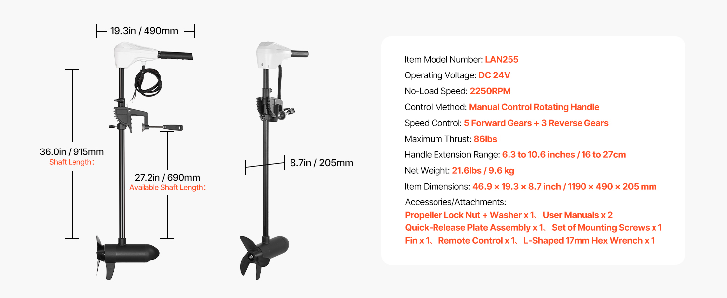 - Spinta potente per prestazioni superiori: il nostro motore elettrico da traina manuale da 24 V eroga 86 libbre di spinta, offrendo potenza ed efficienza eccezionali per la pesca in acqua salata