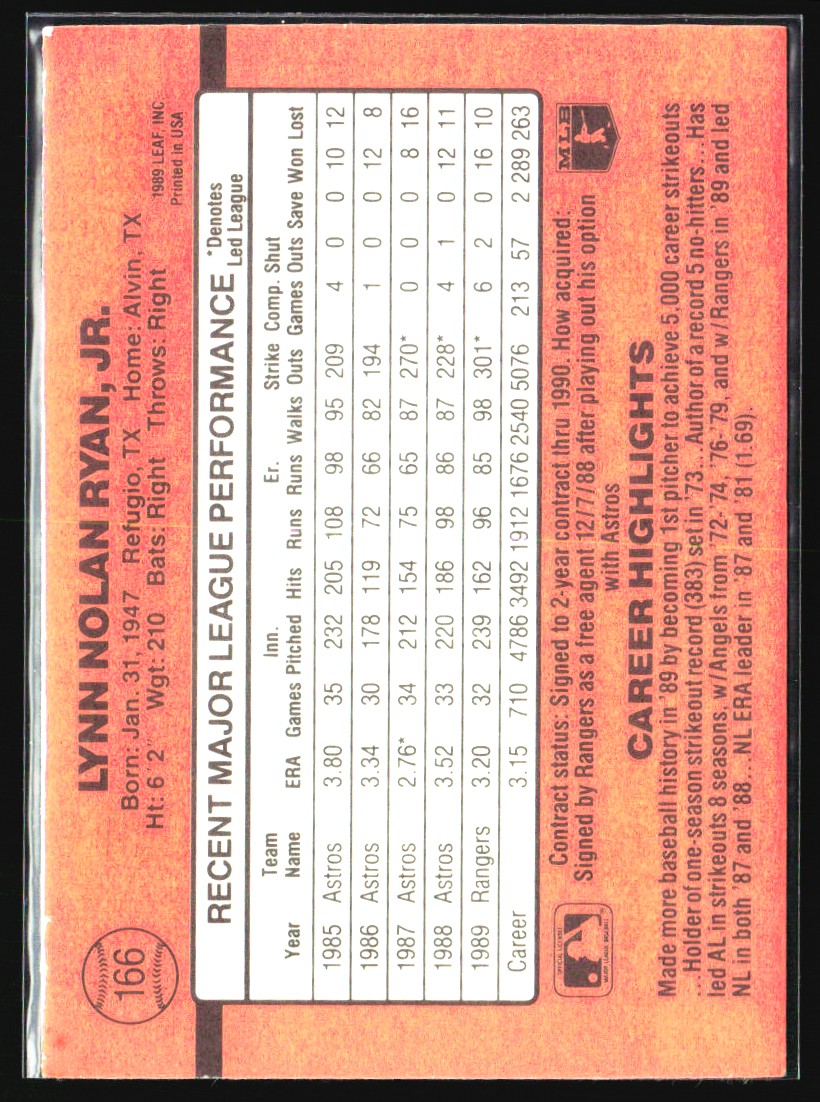 1990 Donruss Nolan Ryan Texas Rangers #166