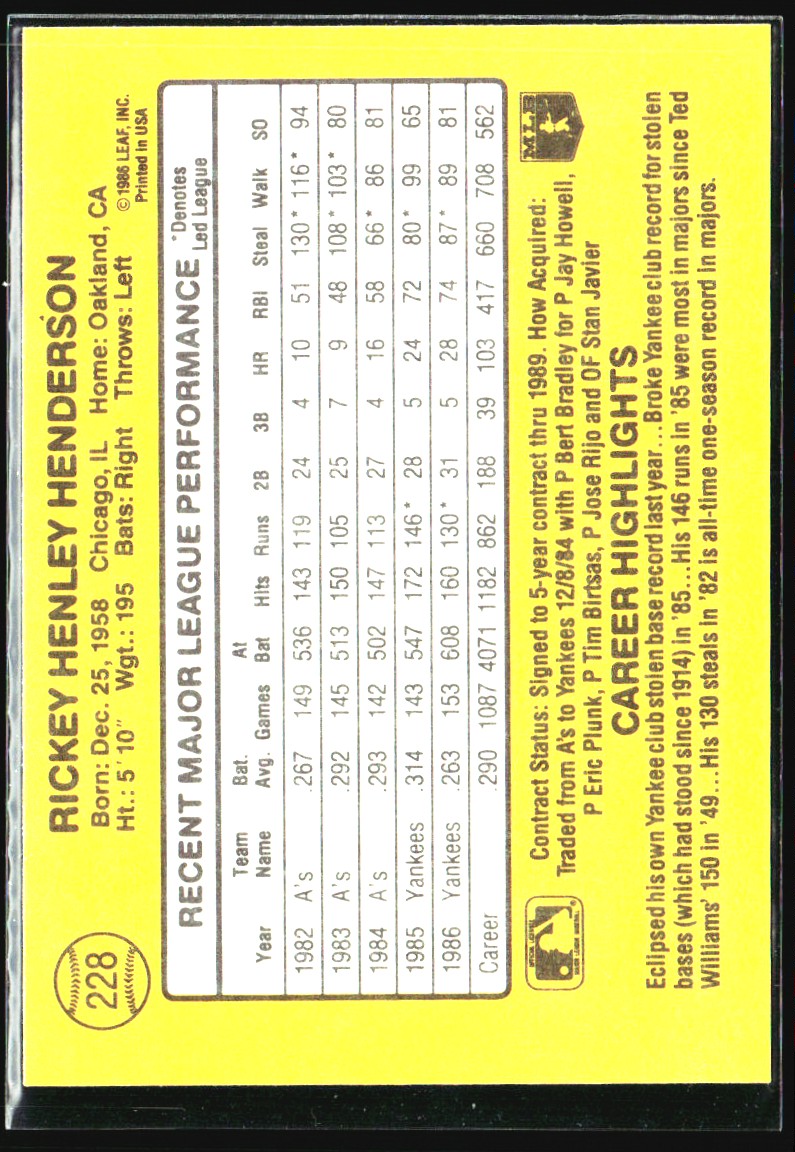 1987 Donruss Rickey Henderson New York Yankees #228