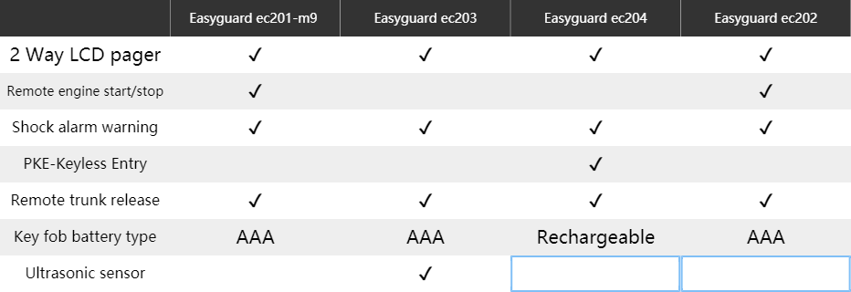 EASYGUARD 2 Way Car Alarm System EC202-1 with LCD Pager Display Remote Engine Start Shock Sensor Microwave Alarm DC12V Long Remote Range