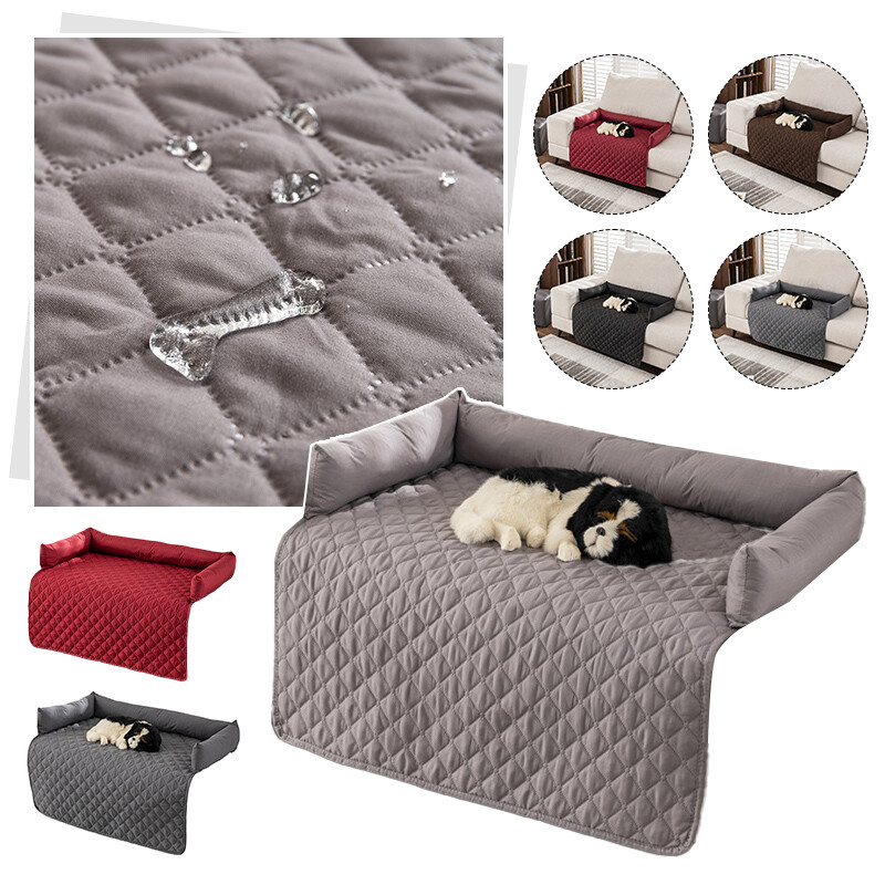 Plaid Waterproof Sofa Couch Cover Bed Pet Blanket Mat with Pillow for Large Dog