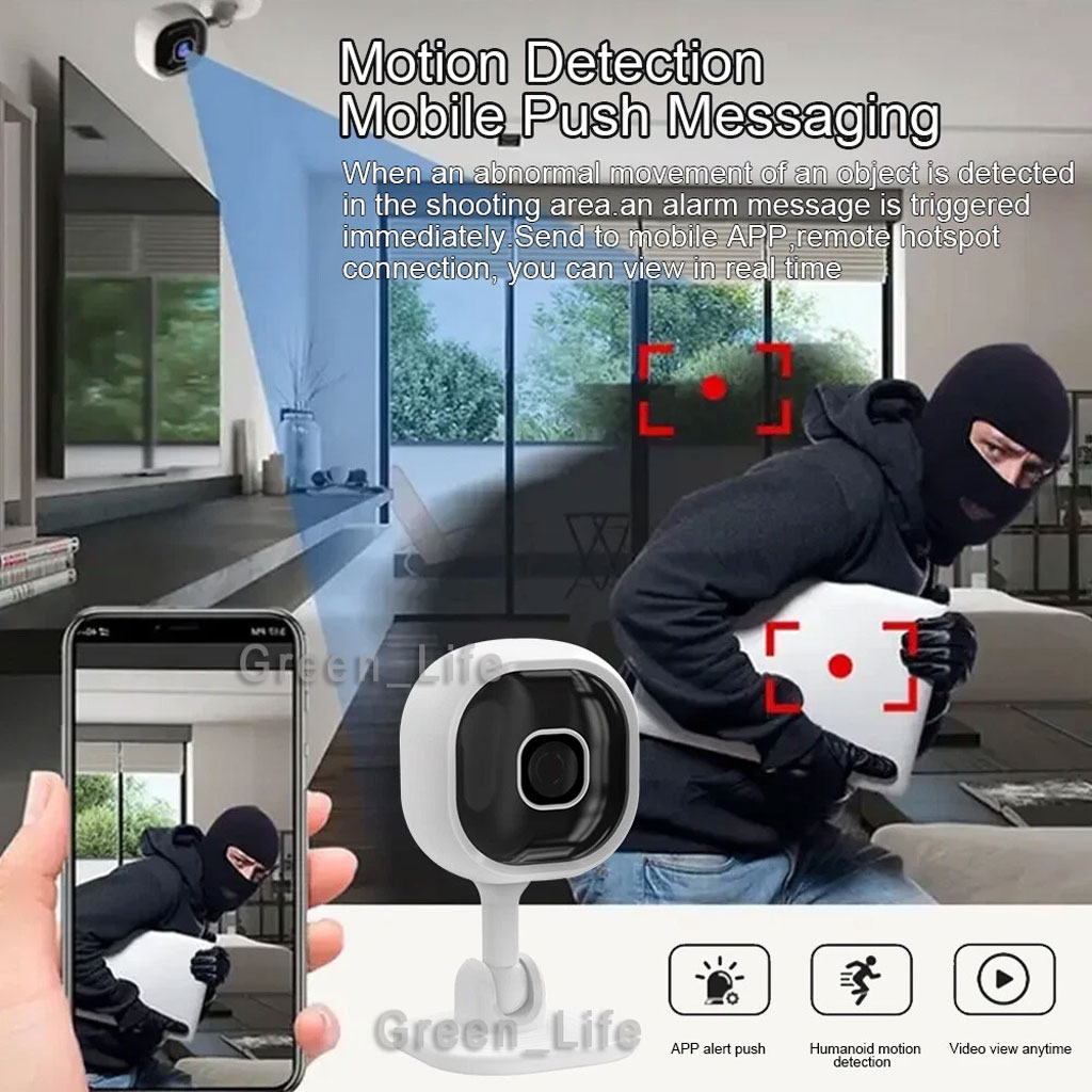 3, Motion detection function: after the device is connected to WiFi, open the motion detection in the cell phone APP side, there are people close that message notification;