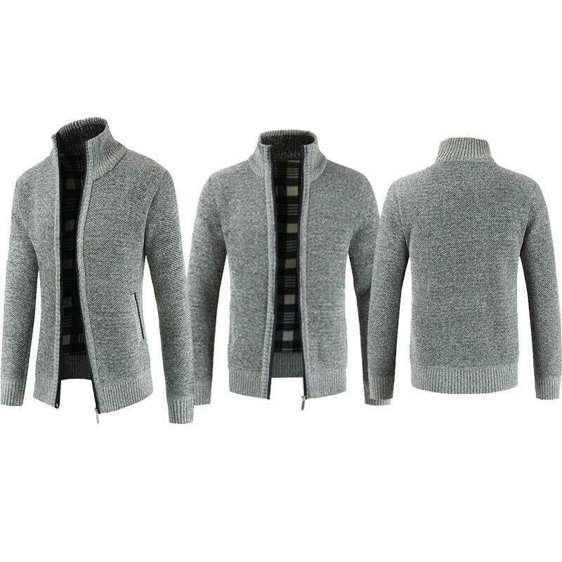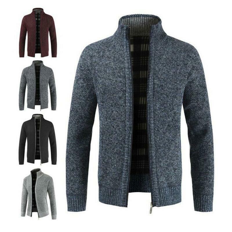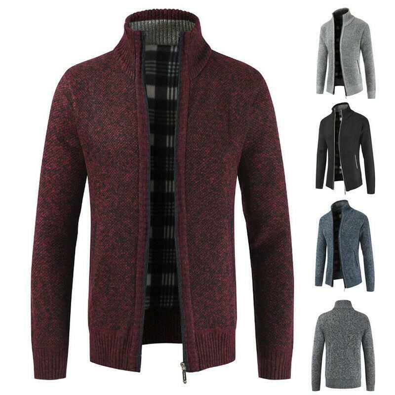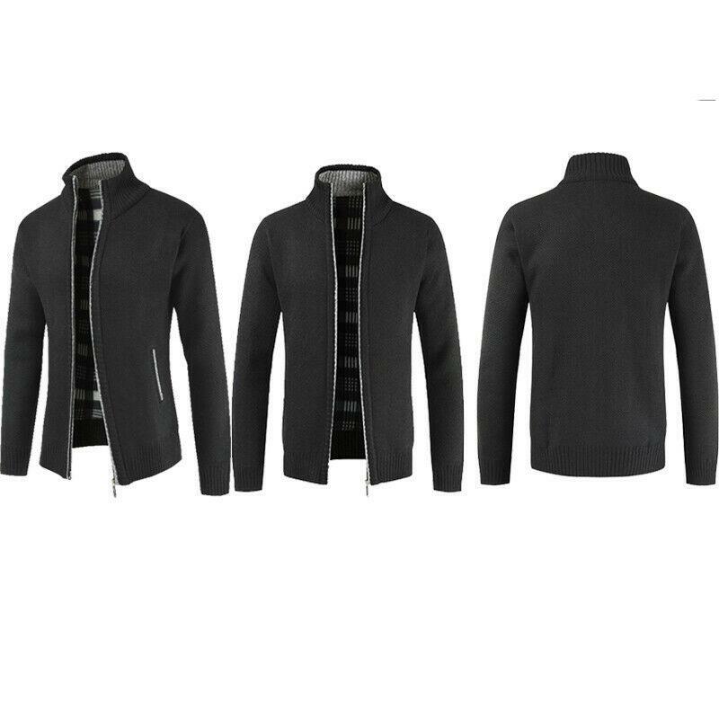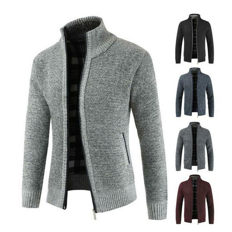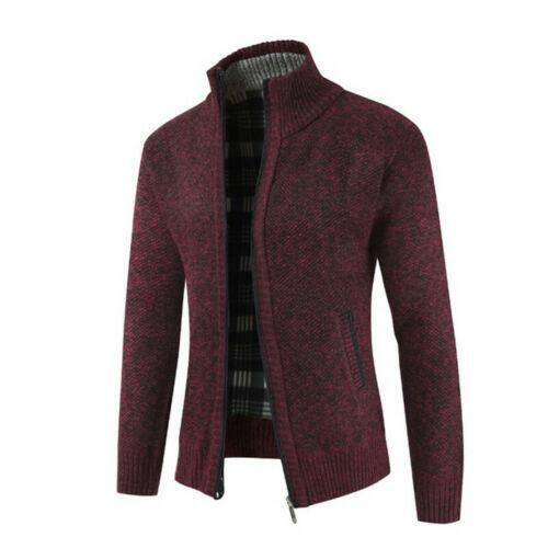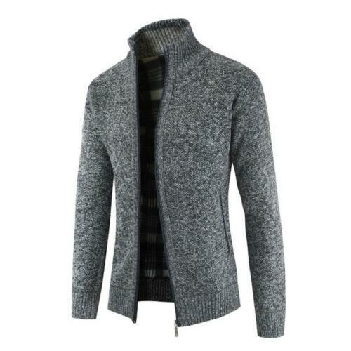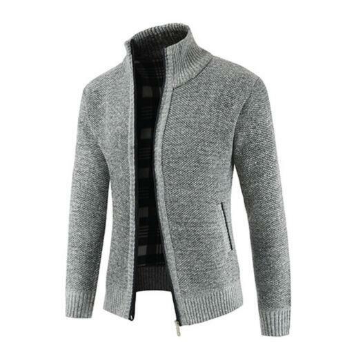 Mens Fashion Knit Full Zip Stand Collar Long Sleeve Jacket Cardigan Sweater Tops