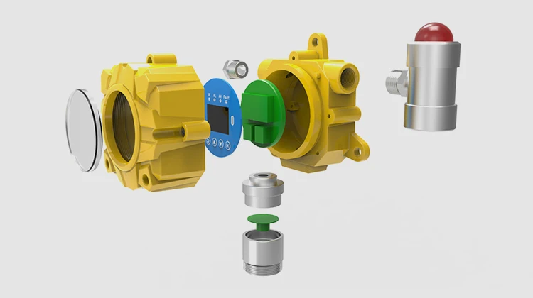 The outer casing is made of die-cast aluminum shell with flameproof structure. The groove of the upper cover is designed to lock the casing. The front of the sensor is designed as a downward structure to ensure good contact between the sensor and the gas. The inlet is made of explosion-proof waterproof joint.