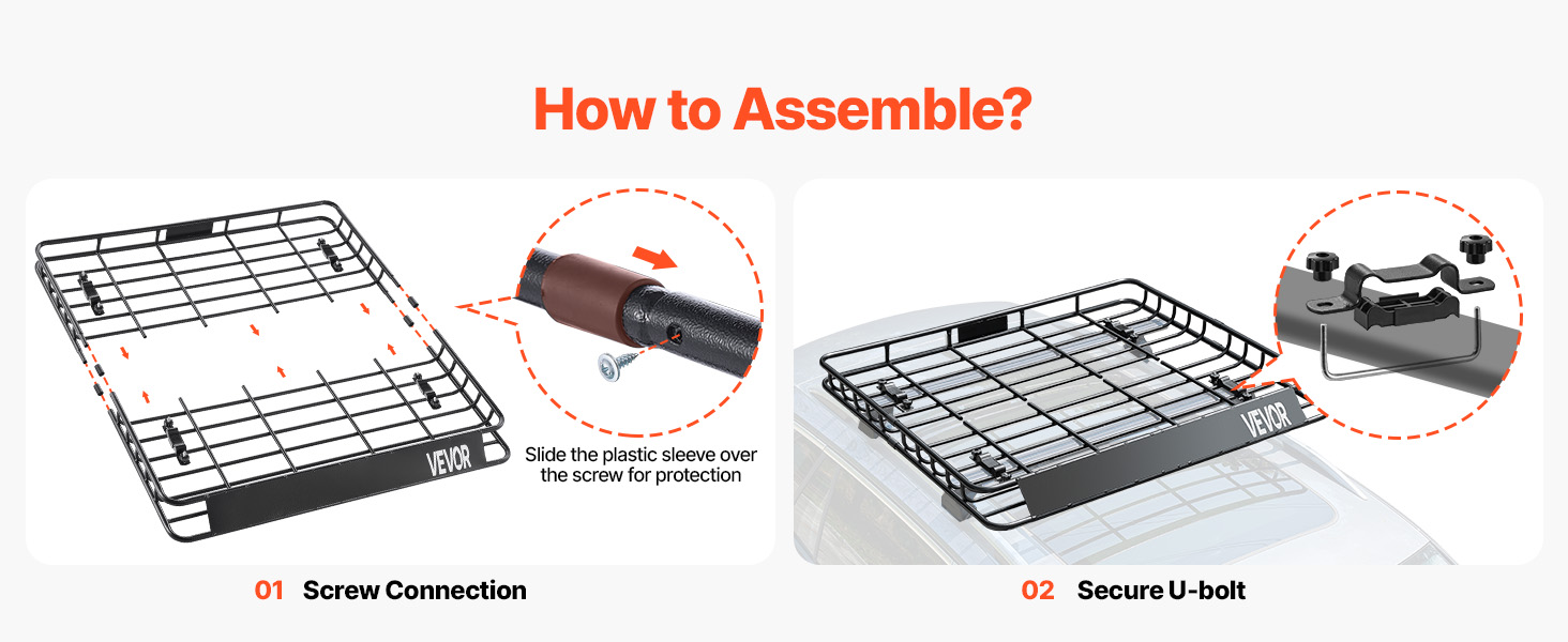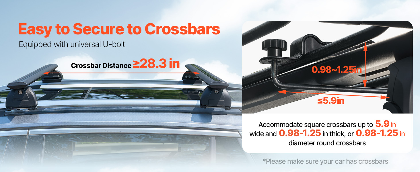 Grazie ai quattro bulloni a U universali, il montaggio e lo smontaggio sono un gioco da ragazzi. Questo portapacchi si adatta facilmente alla maggior parte delle barre trasversali del tetto. Le viti incluse facilitano l'installazione e la guaina in plastica protegge le viti da eventuali danni.