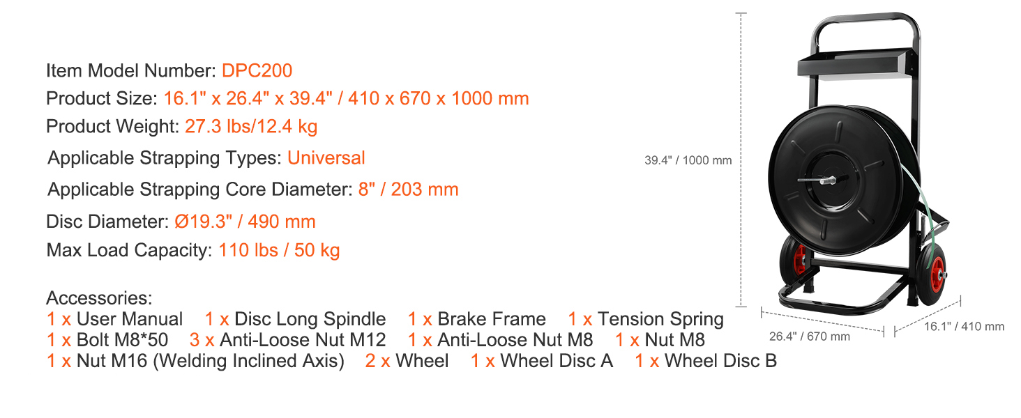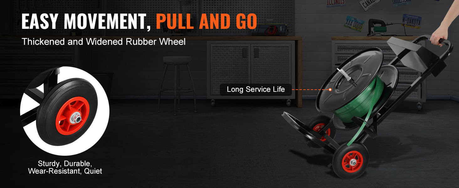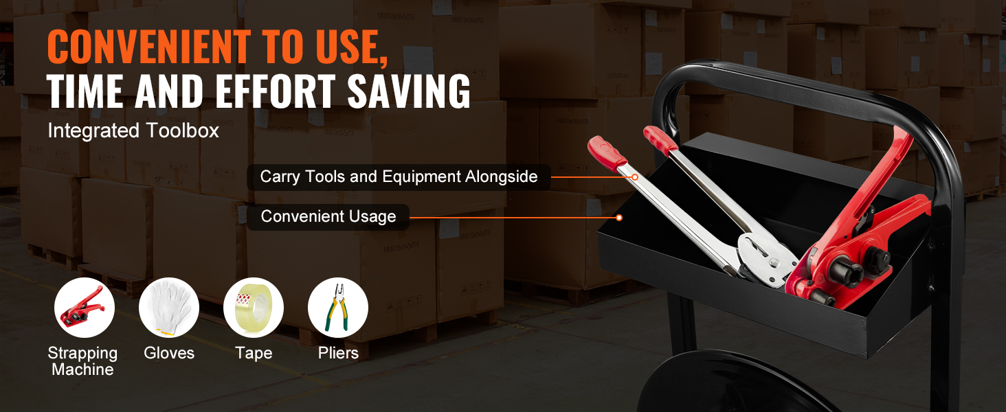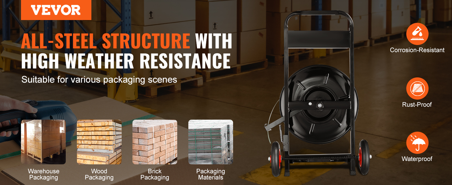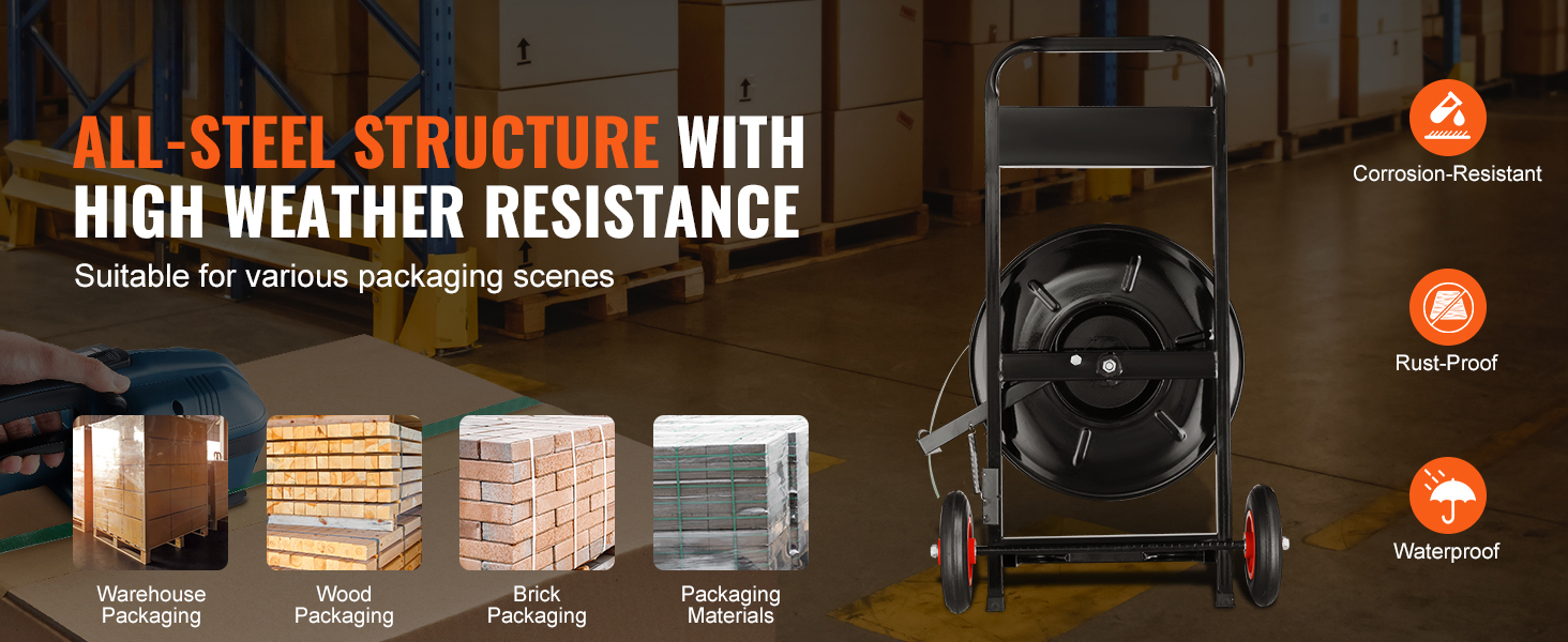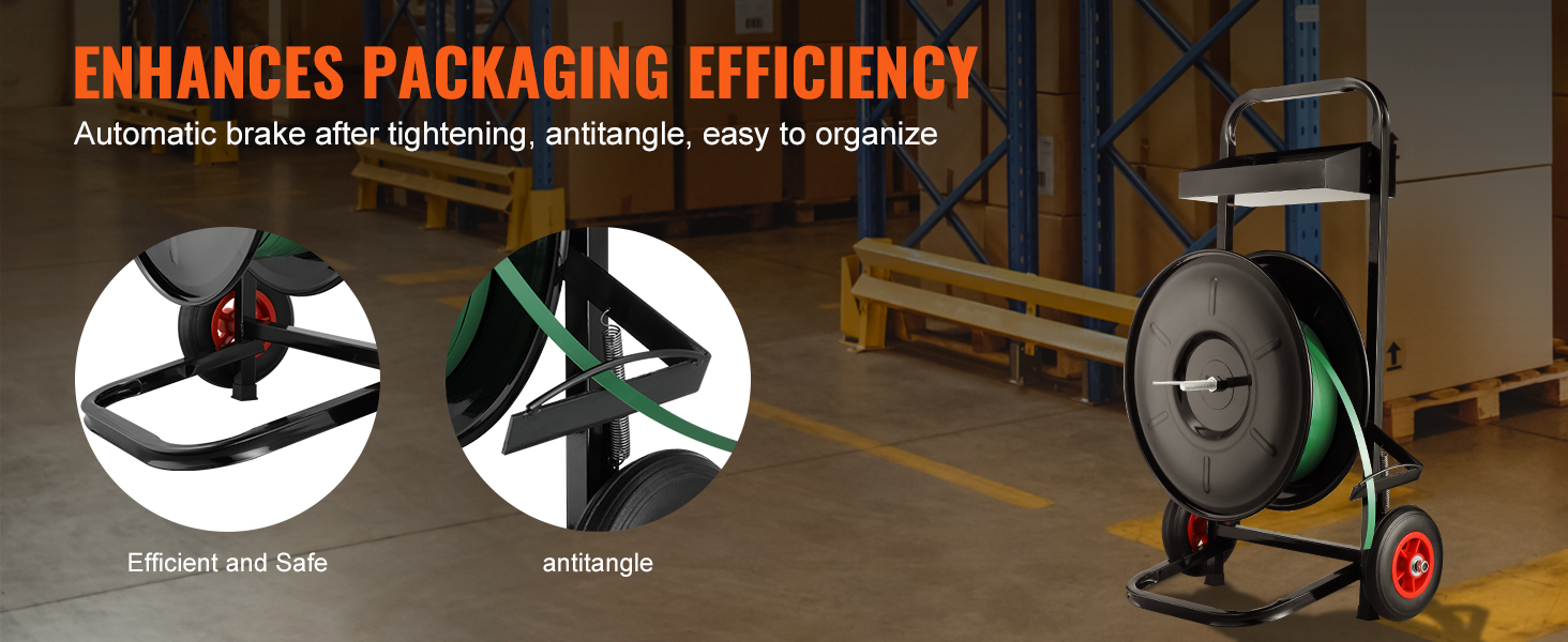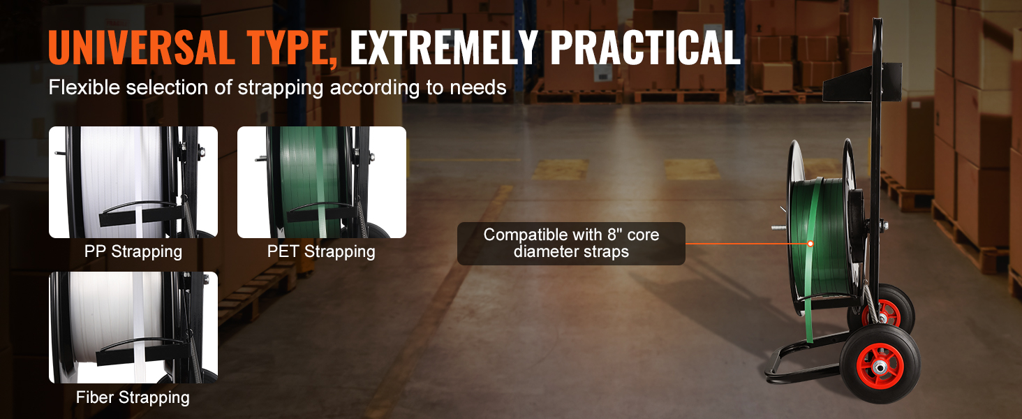 Dieser Umreifungswagen funktioniert problemlos mit 203 x 203 mm großen PP-, PET- und Faserbändern, sodass Sie problemlos zwischen verschiedenen Typen wechseln können. Er ist perfekt für verschiedene Umreifungsanforderungen geeignet und bietet Ihnen einen Wagen, der alles kann.