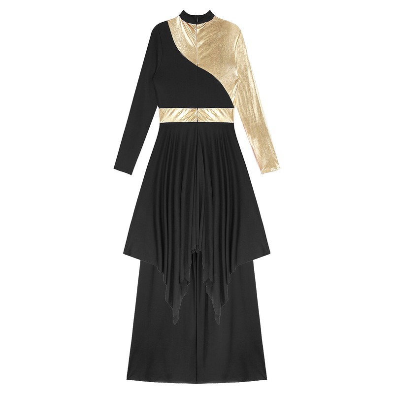 DE iEFiEL Damen Liturgisch Lob Kleid Langarm Tanzkleid Metallic mit Tanzhose