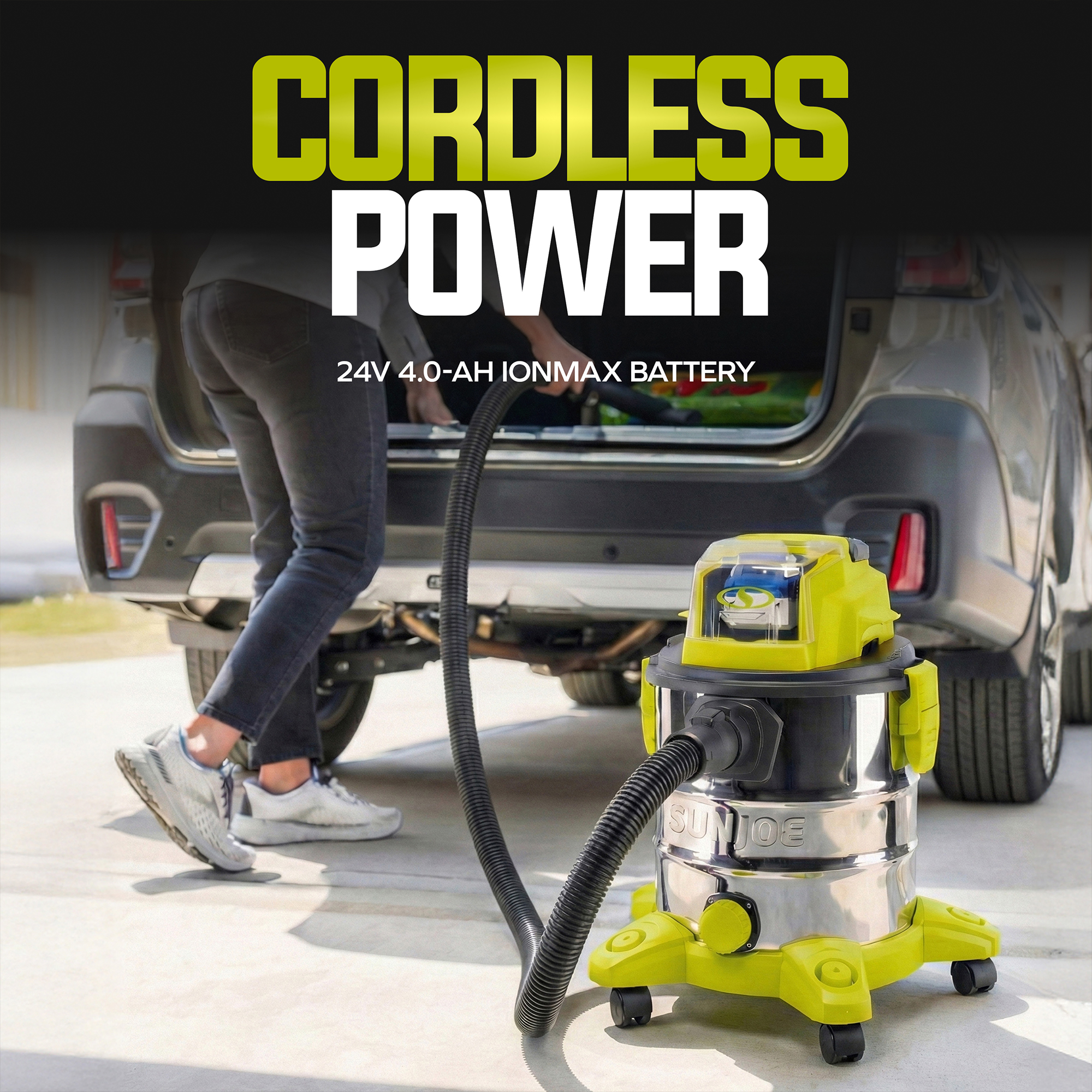 Compatible with all 24V batteries and chargers, the 24V-WDV6000 is a smart addition to any cordless tool collection. When you're finished, simply pop out the battery, recharge, and store it away. With Sun Joe, messes don’t stand a chance—wet or dry.