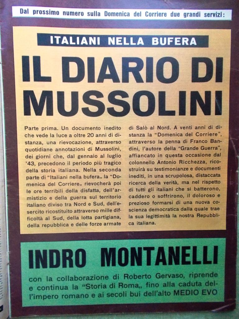 Non fu concepito come periodico di informazione, per non risultare un doppione del quotidiano. Venne pensato come «settimanale degli italiani».