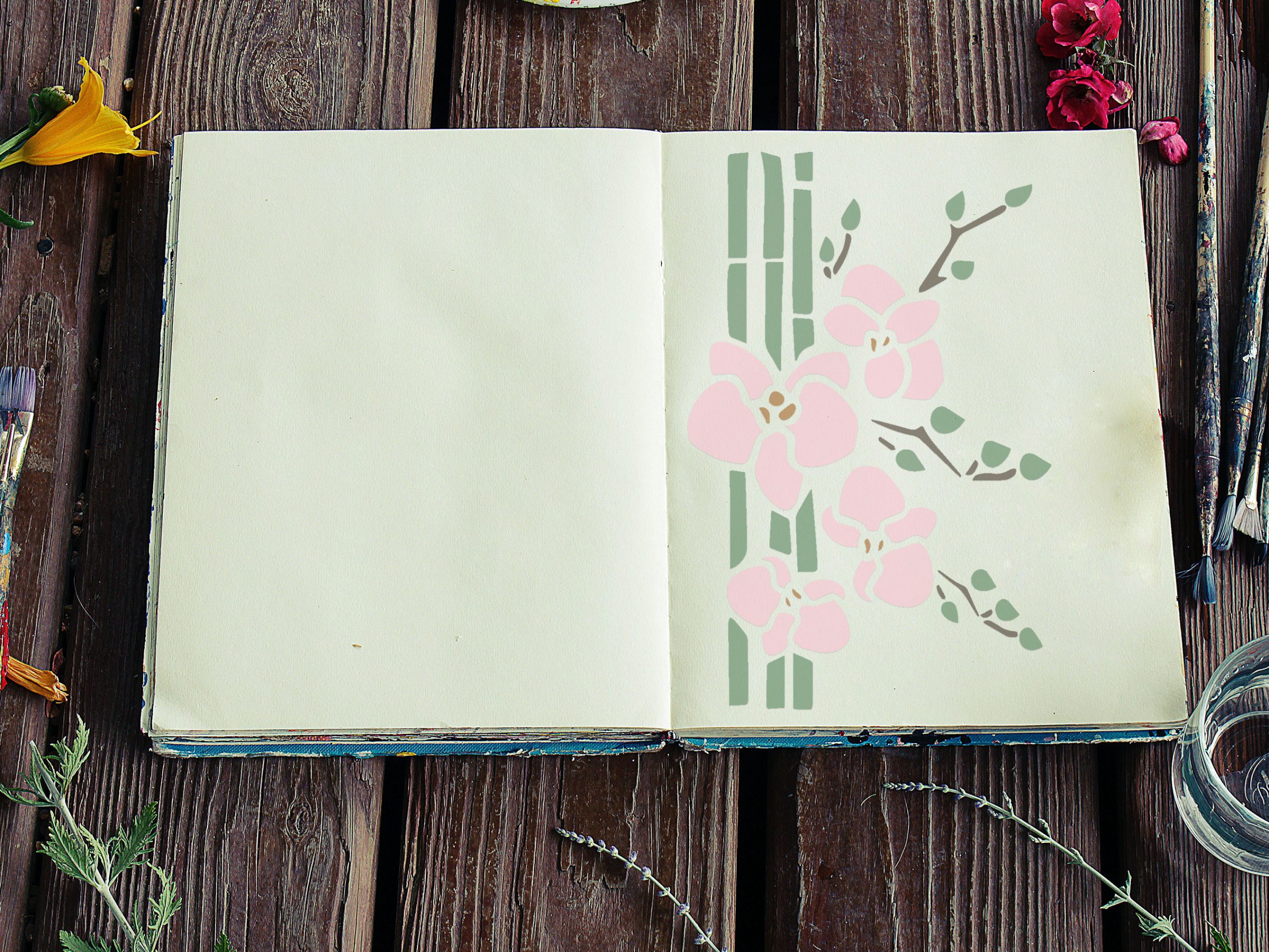 Orchid and Bamboo Stencil - Art and Wall Stencil