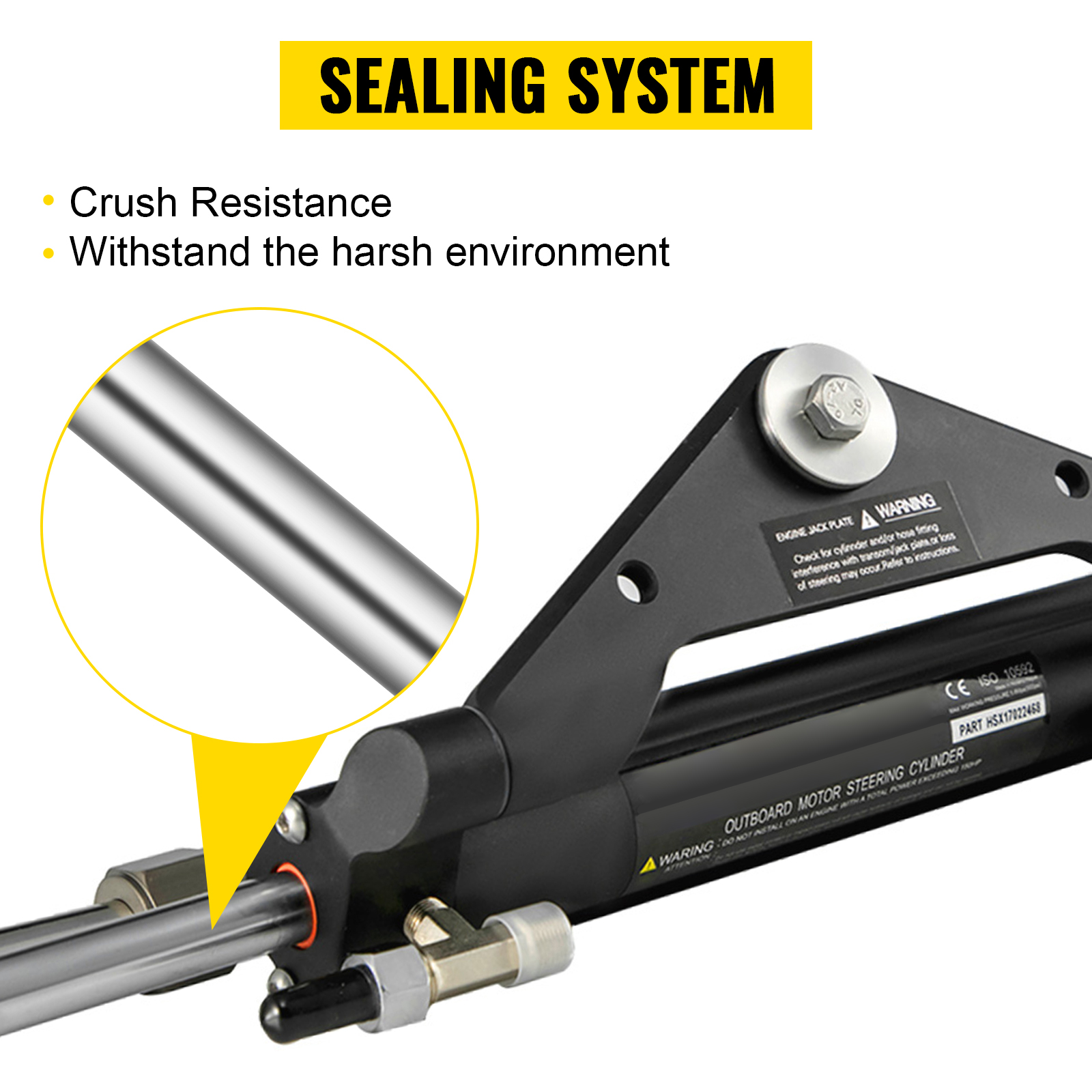 Der Arbeitsdruck des hydraulischen Lenkzylinders beträgt bis zu 10,3 MPa (1500 psi). Er ist für Boote mit einer maximalen Leistung von 150 PS ausgelegt.