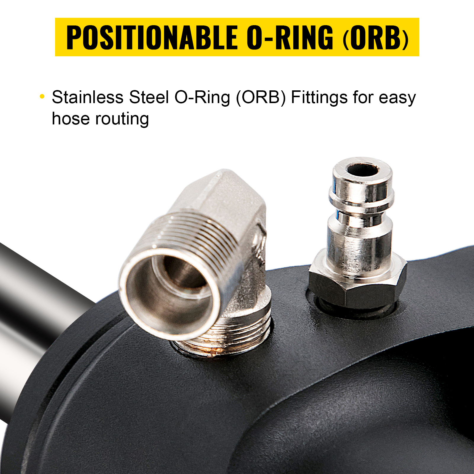 Unser Lenkzylinder enthält positionierbare Edelstahl-O-Ring (ORB)-Anschlüsse für eine einfache Schlauchführung.
