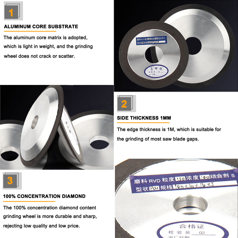 Mainly used for grinding carbide and hard steel, stone, metal and other processing and polishing, mainly used in high hardness alloy knives and carbide alloy saw blade, serrated grinding process.