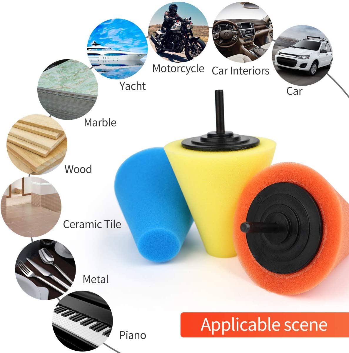 Auto Wheel Polishing Sponge Taper design,easy on the uneven surface of the polishing wheel,The cone’s long, tapered side is perfect for polishing broad, curved surfaces.Ideal for getting into tight, difficult-to-reach areas Combined with your favorite metal polish, it gives you a deep, mirror-like shine in less time.Long life, can be used repeatedly after cleaning.