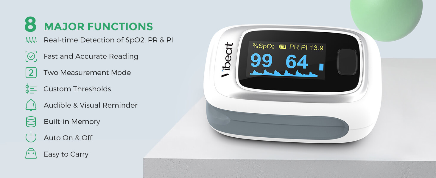 【Instant to Start】Wear the oximeter to start. Measures blood oxygen saturation, pulse rate, perfusion index and pulse waveform in few seconds and display it on the OLED screen.
