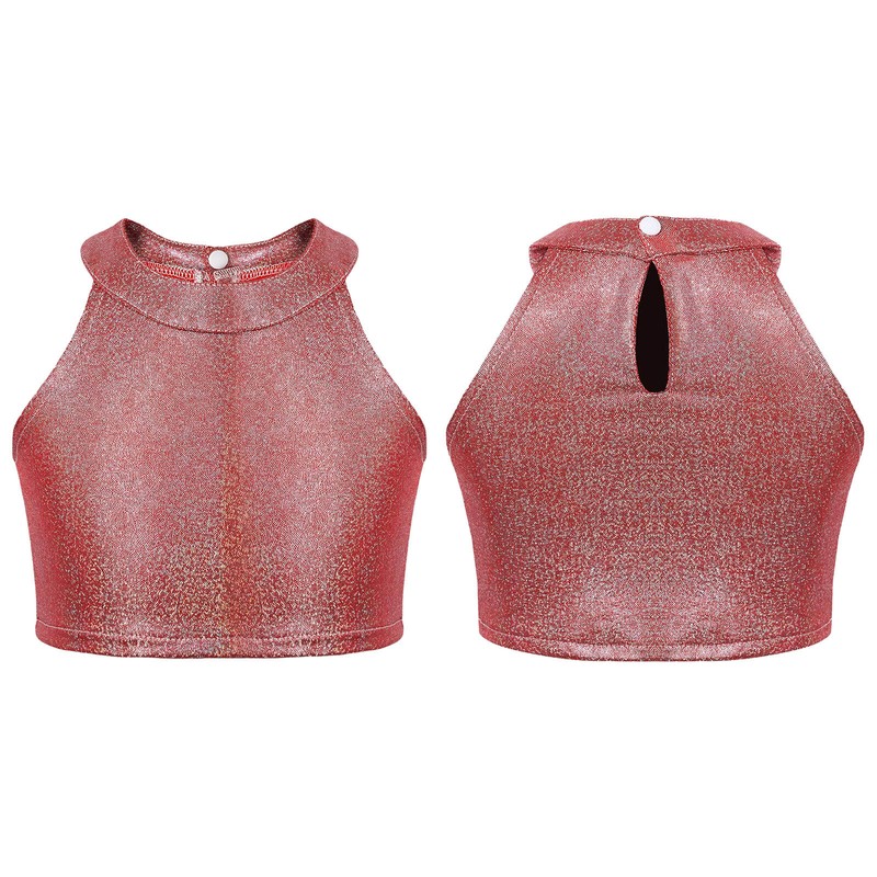 Sleeveless crop top makes your child eye-catching in the crowd with metallic appearance.