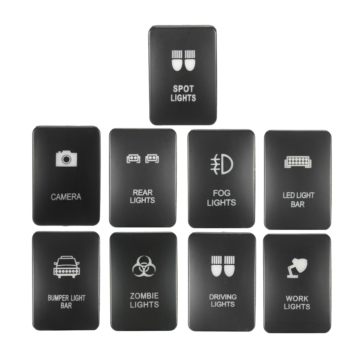 Patterns(type): Camera, Spot Lights, Bumper Light Bar, Zombie Lights, Driving Lights, Work Lights, LED Light Bar, Fog Lights, Rear Lights