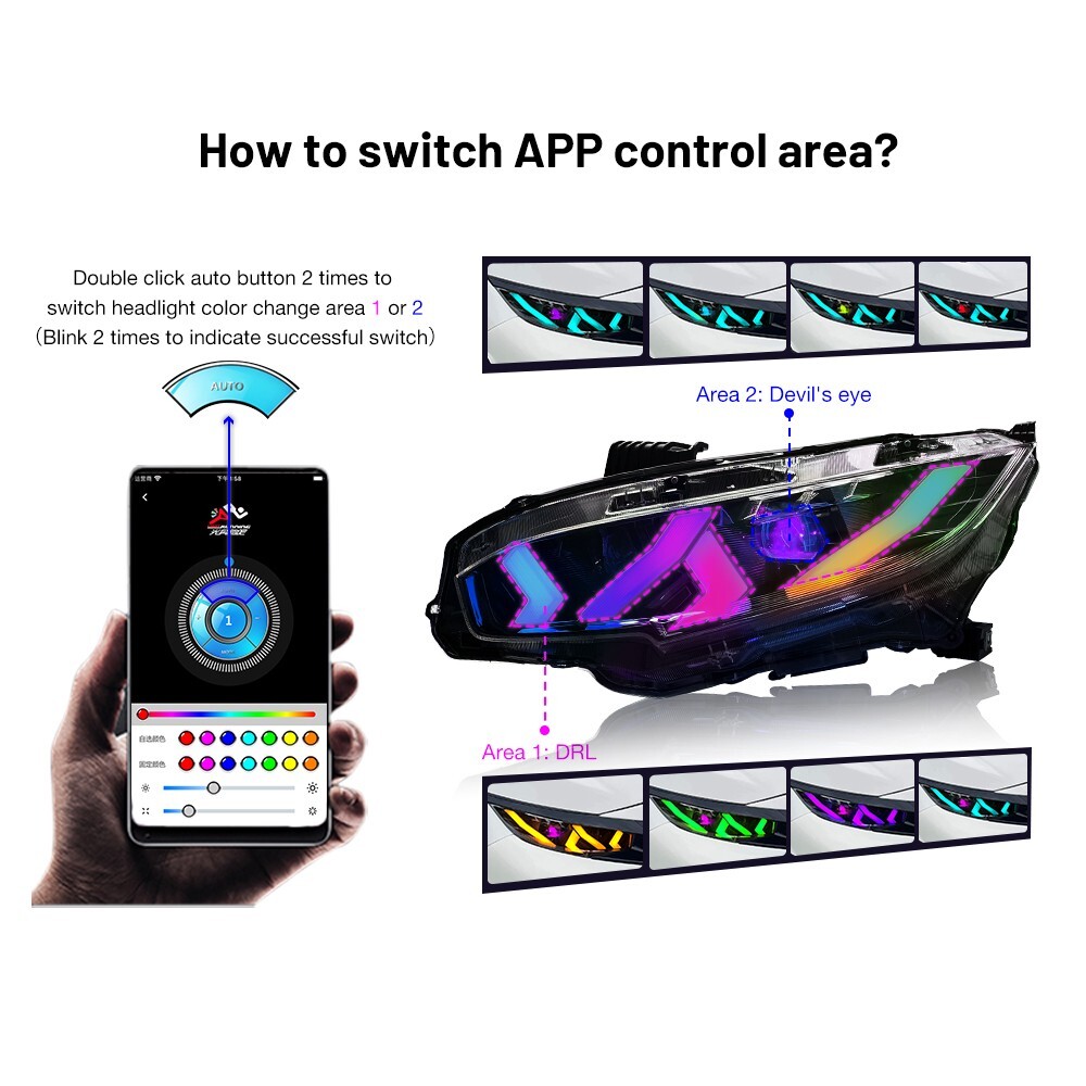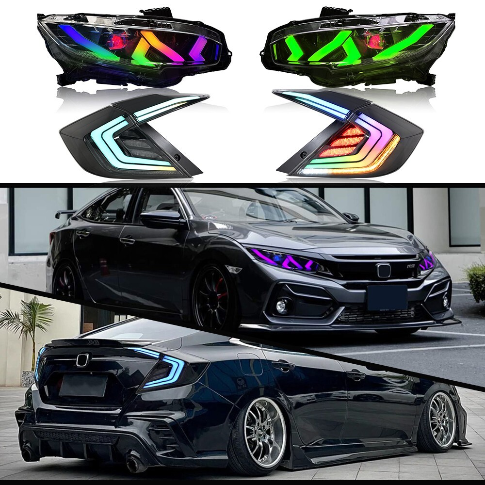 High/Low Beam RGB Led Headlights+Tail Lights For Honda Civic Sedan 2016-2021