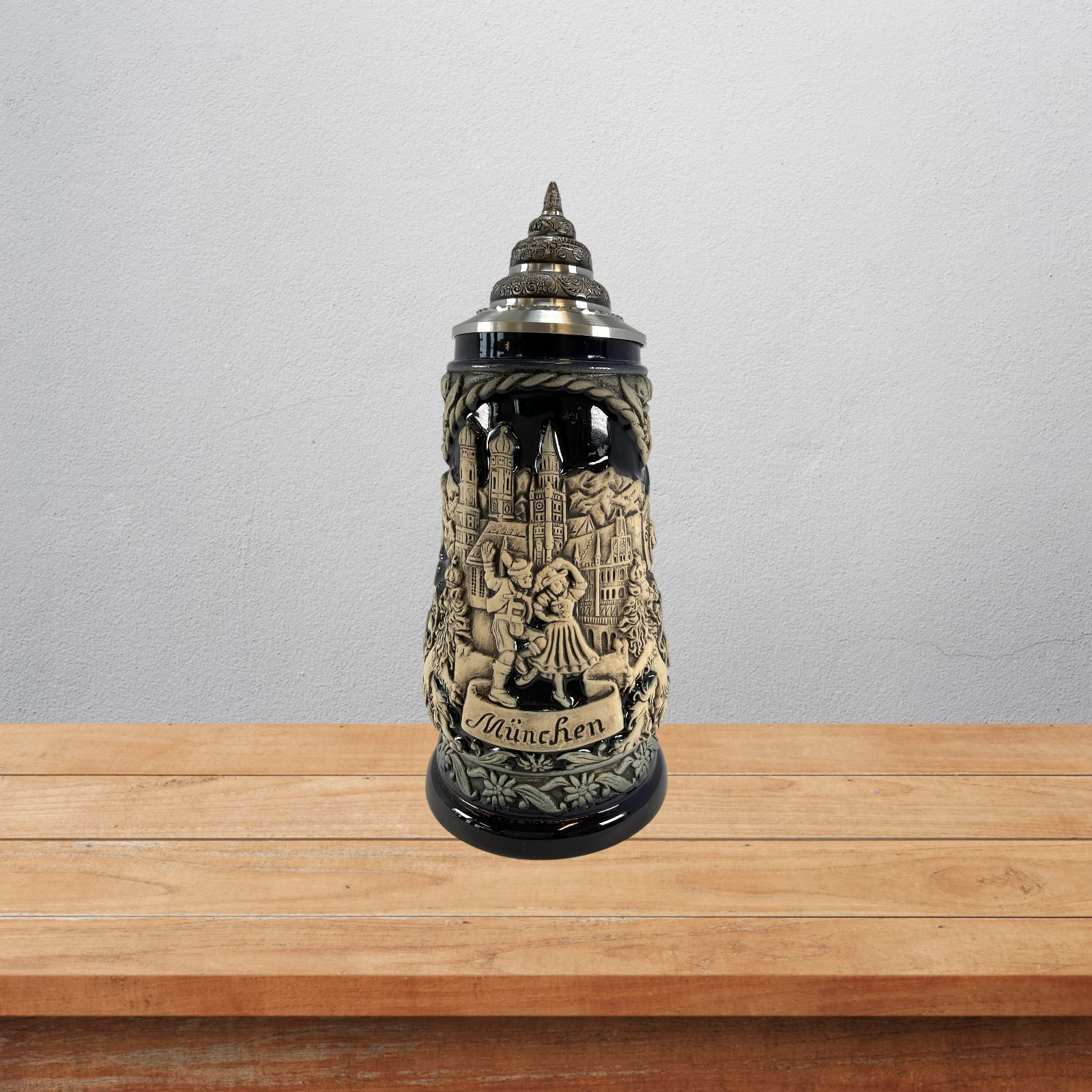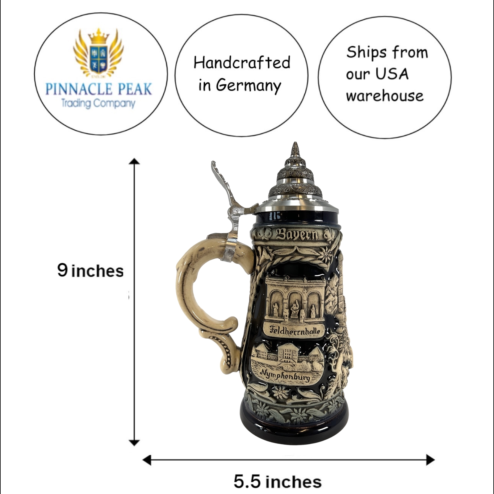 Munchen Munich Bavaria Germany Landmarks Blue Relief LE German Beer Stein .4 L