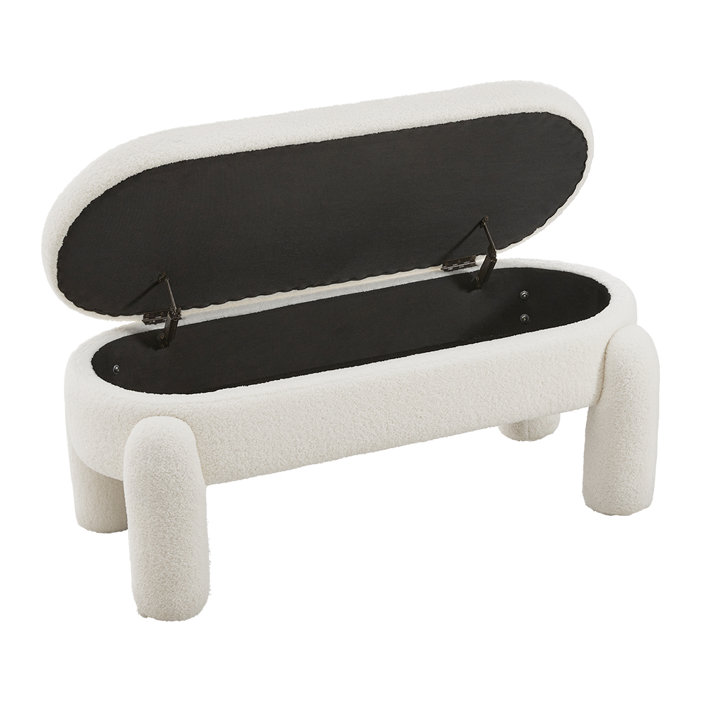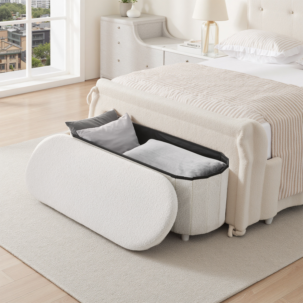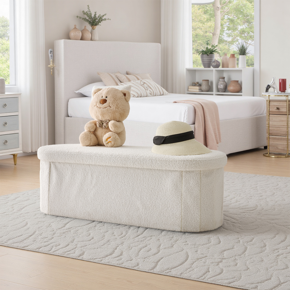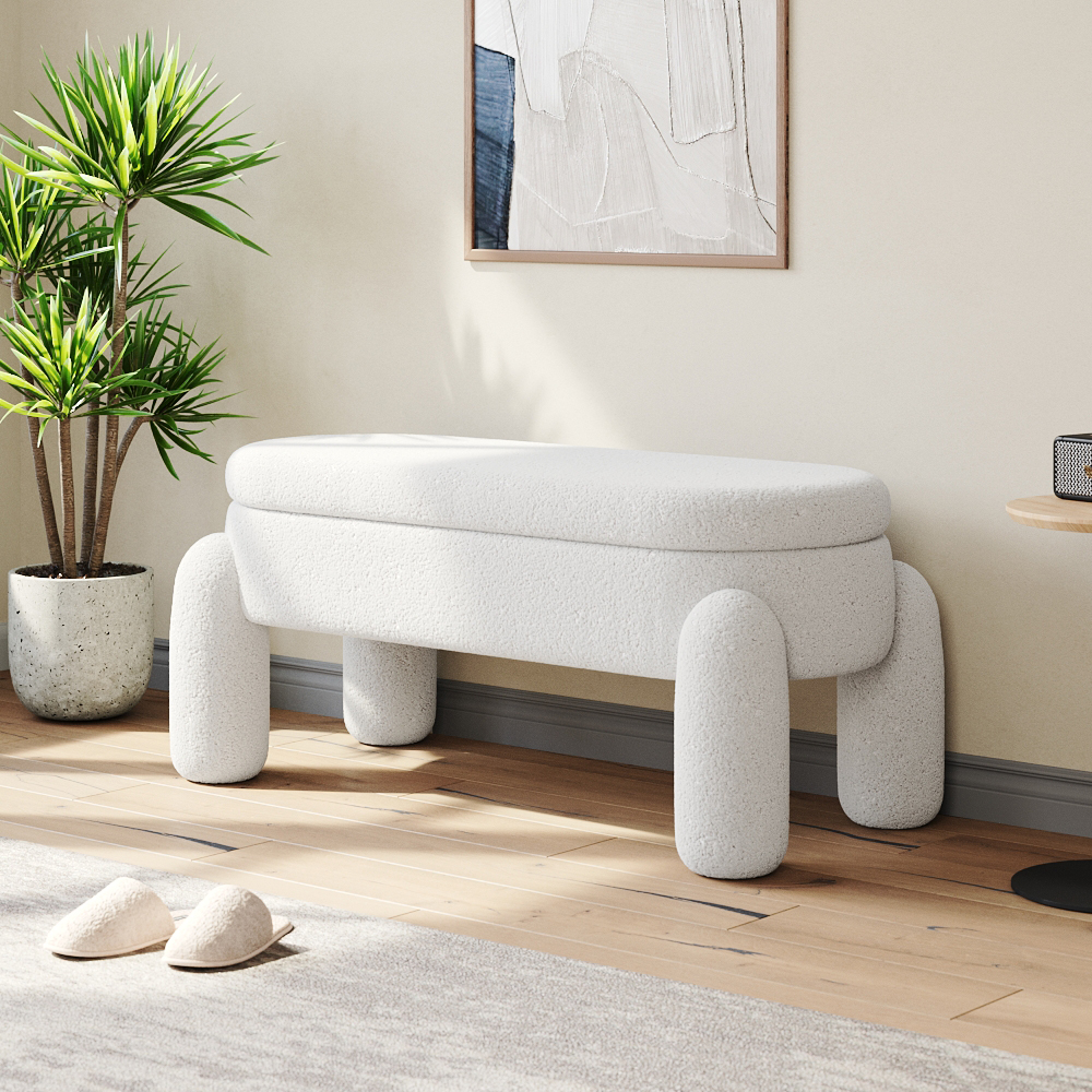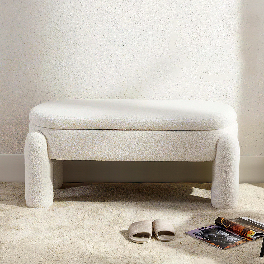Transform your home into a haven of comfort and style with our upholstered storage bench. Imagine stepping into a cosy living room, where the inviting warmth of soft teddy fleece beckons you to take a seat. This versatile piece effortlessly elevates your space, blending seamlessly with modern and Nordic aesthetics alike. Picture this: a serene bedroom, where the bench serves not just as a seat, but as a discreet storage solution for your favourite novels and plush toys. Alternatively, envision it positioned by the entrance, welcoming guests with its chic design and serving as a convenient spot for bags.