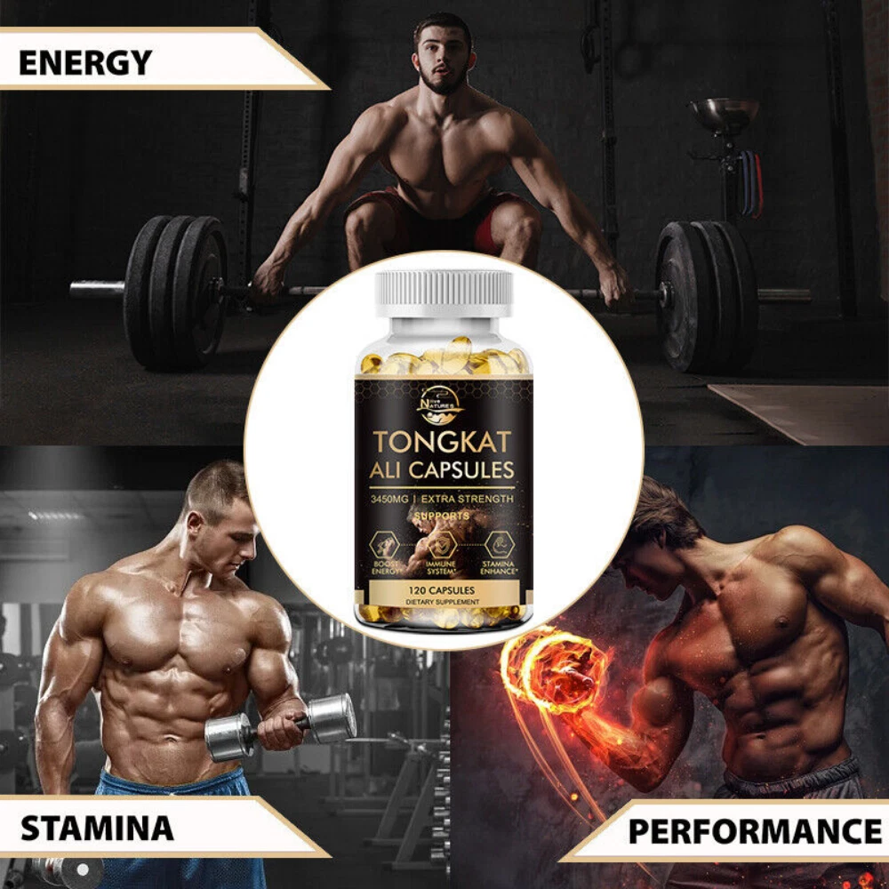 Supplement Facts: Serving Size 2 Capsule Each Softgel Contains: % Daily Value Tongkat Ali Root Extract 200: 1 200 mg Ashwagandha Root: 100 mg Tribuus Terrestris: 75mg Safed Musli Root: 25mg Ginseng Root: 25mg Saw Palmetto Bery: 25mg Maca Root: 25mg Shilajit: 25mg Black Pepper: 5mg Daily Value (DV) not established Potency Equivalent To 3450 mg Of Dried Powder