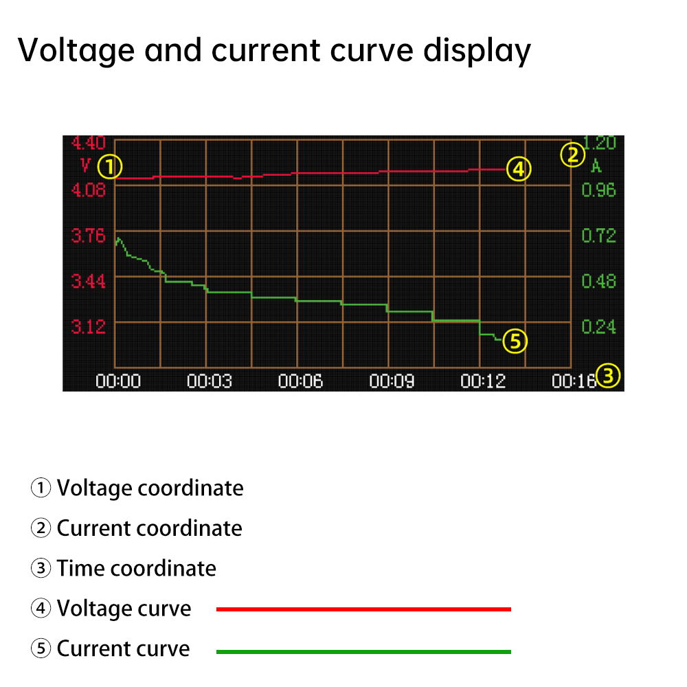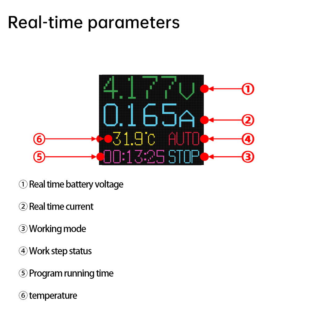 5. Real-time multi-parameter display: Real-time display of battery voltage, working current, capacity measurement and operating time, and fully grasp the battery status.