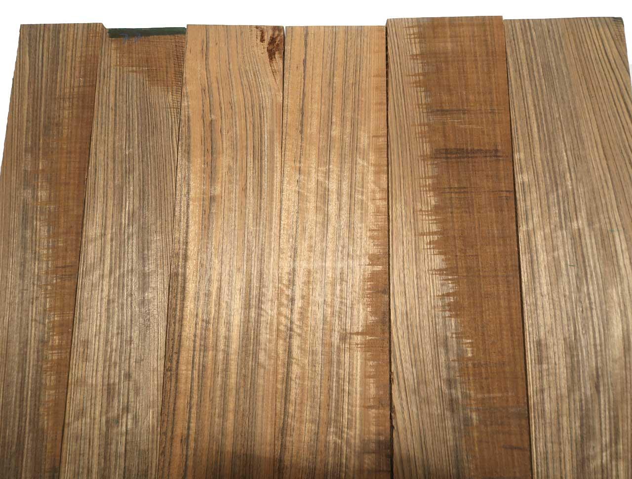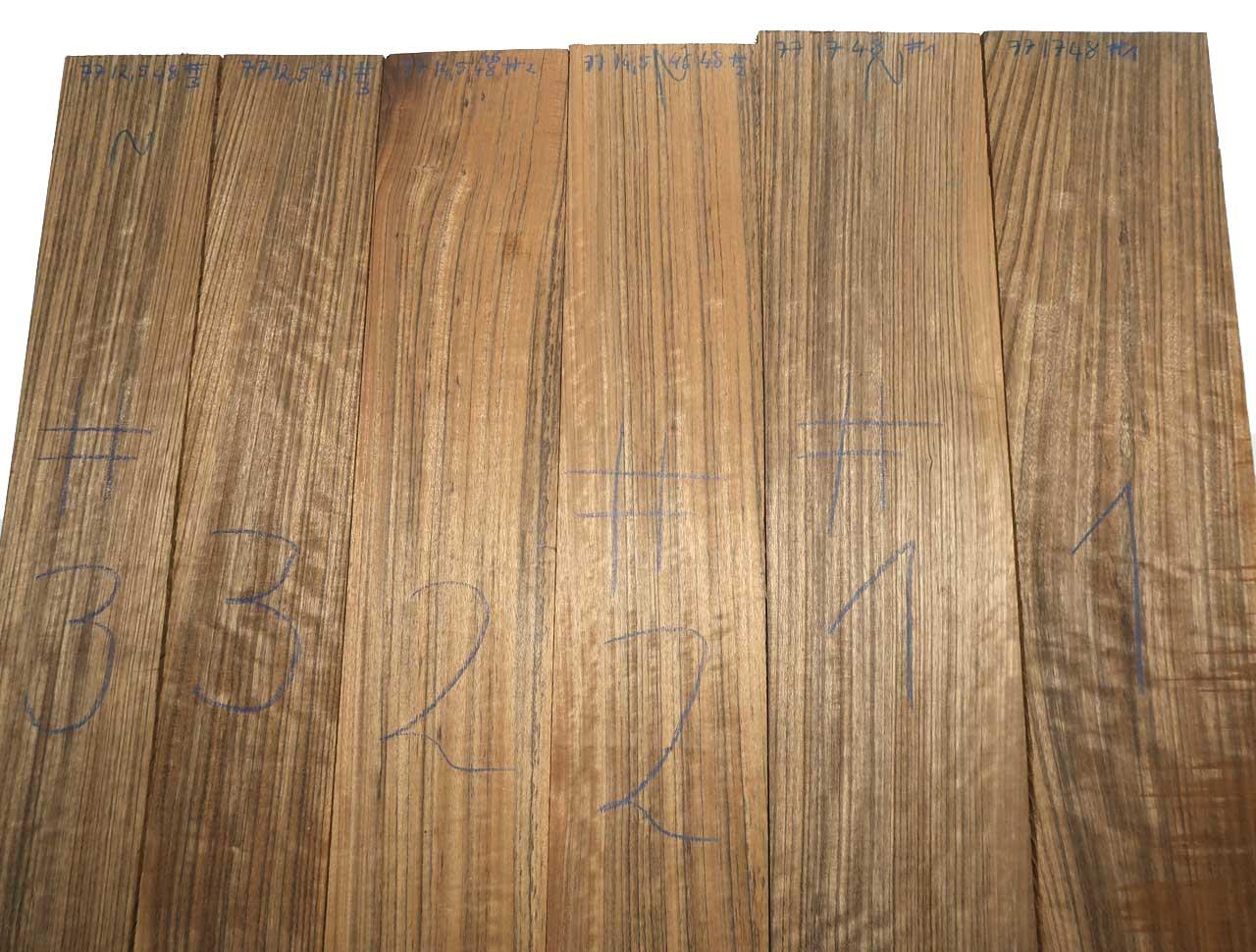 Hierbei handelt es sich um Holz von Mutenje-Amazakoue, auch Ovangkol genannt. Mutenje wird sehr oft als Palisander und Nussbaum Ersatz verwendet! Das stark glänzende Kernholz von Mutenje hat einen graugelben bis hellolivfarbenen Farbton, der mit zunehmender Trocknung olivbraun, fast Nussbaumähnlich, nachdunkelt. Effektvolle Glanzzonen und dunkelbraune bis schwarze Farbstreifen geben dem Holz einen eigenen Charakter.