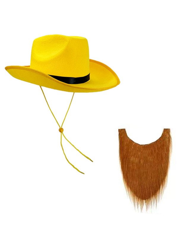 The set comes with a brown beard, enhancing the overall cowboy look and making it ideal for immersive role-play.