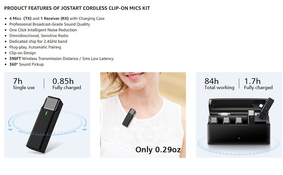 【Professional Dual Noise Cancellation & Studio Sound】This wireless microphone system features advanced dual noise reduction technology. With a single button on the transmitter, you can activate intelligent filtering to block out ambient noise. Equipped with a high-density foam windscreen, it minimizes wind interference and captures your voice with stunning clarity. An 80dB signal-to-noise ratio and 48kHz/24bit sampling rate deliver broadcast-quality, lossless audio for your recordings.