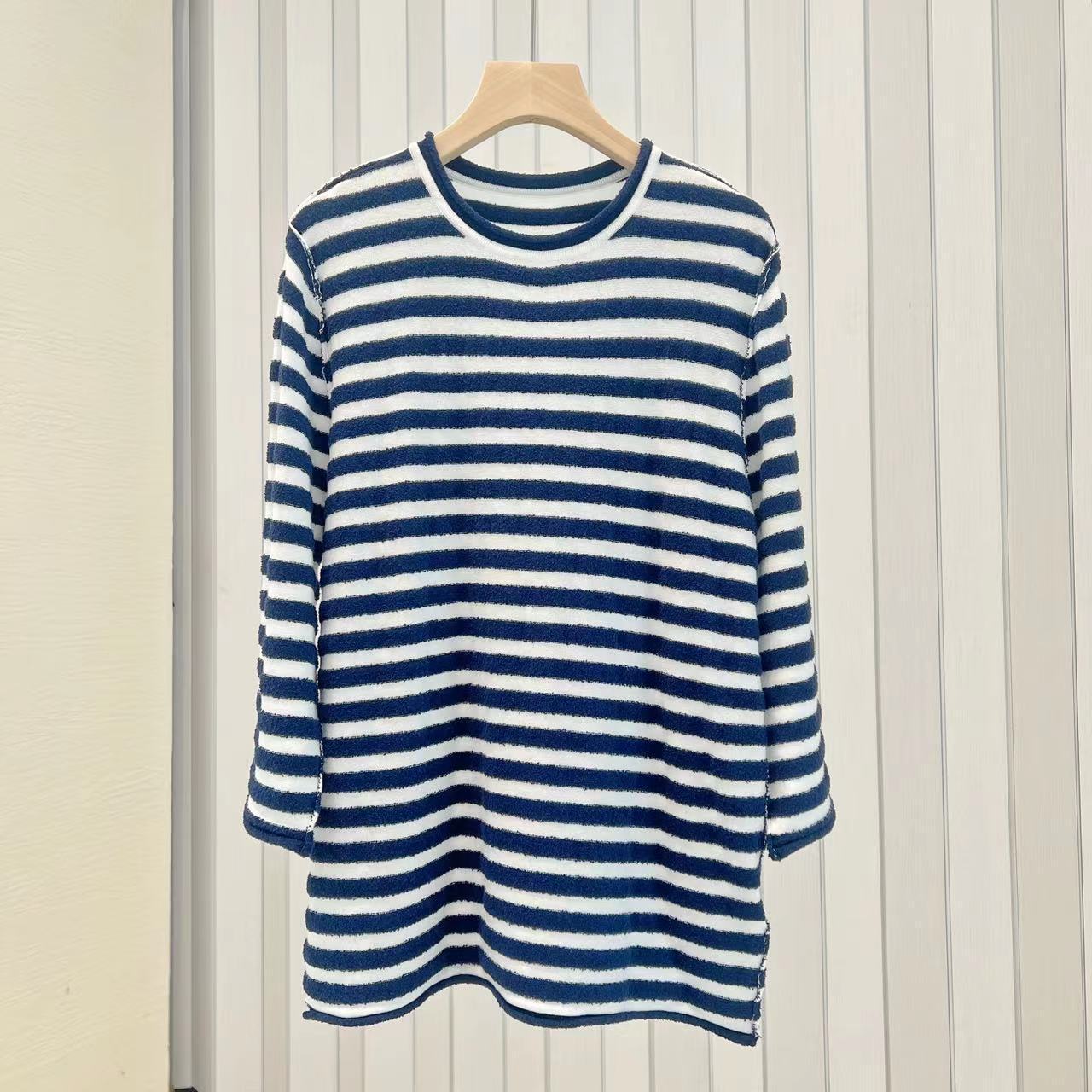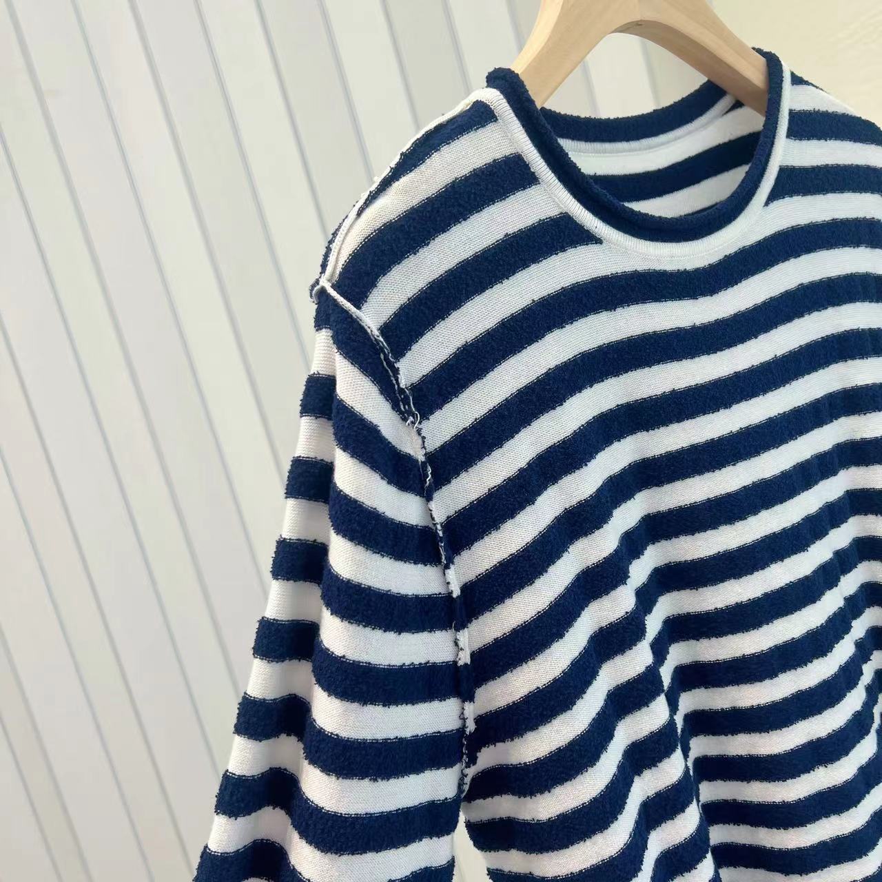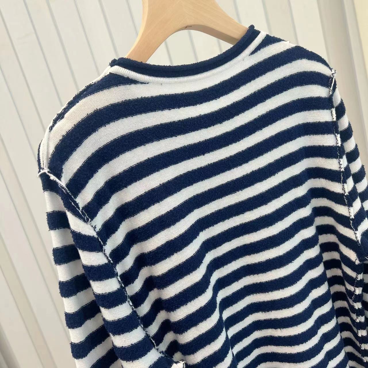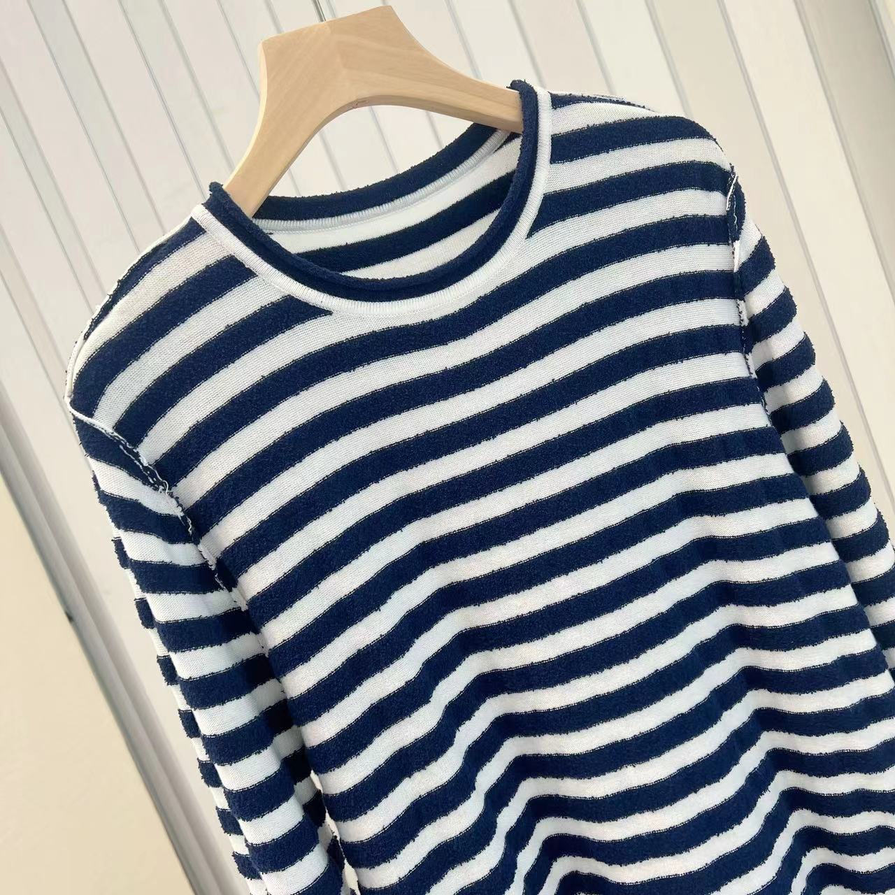 Women's THE ROW Spring Striped Crew Neck Pullover Top Commuter Knitted Sweater