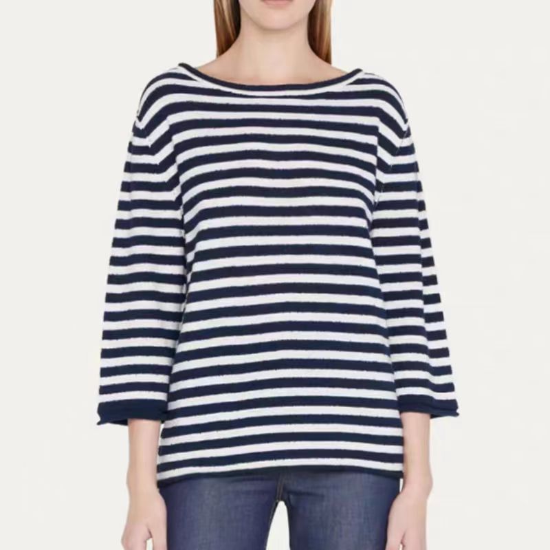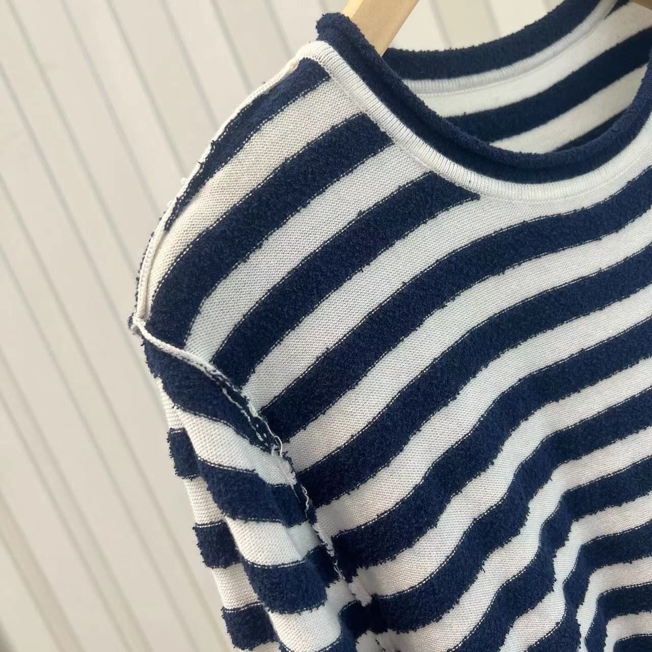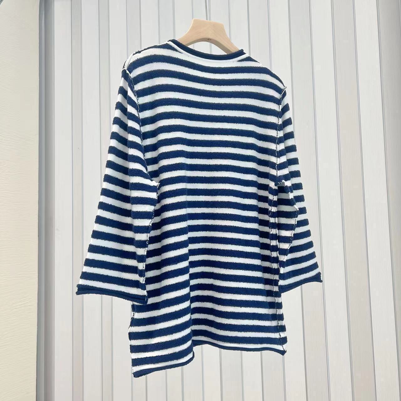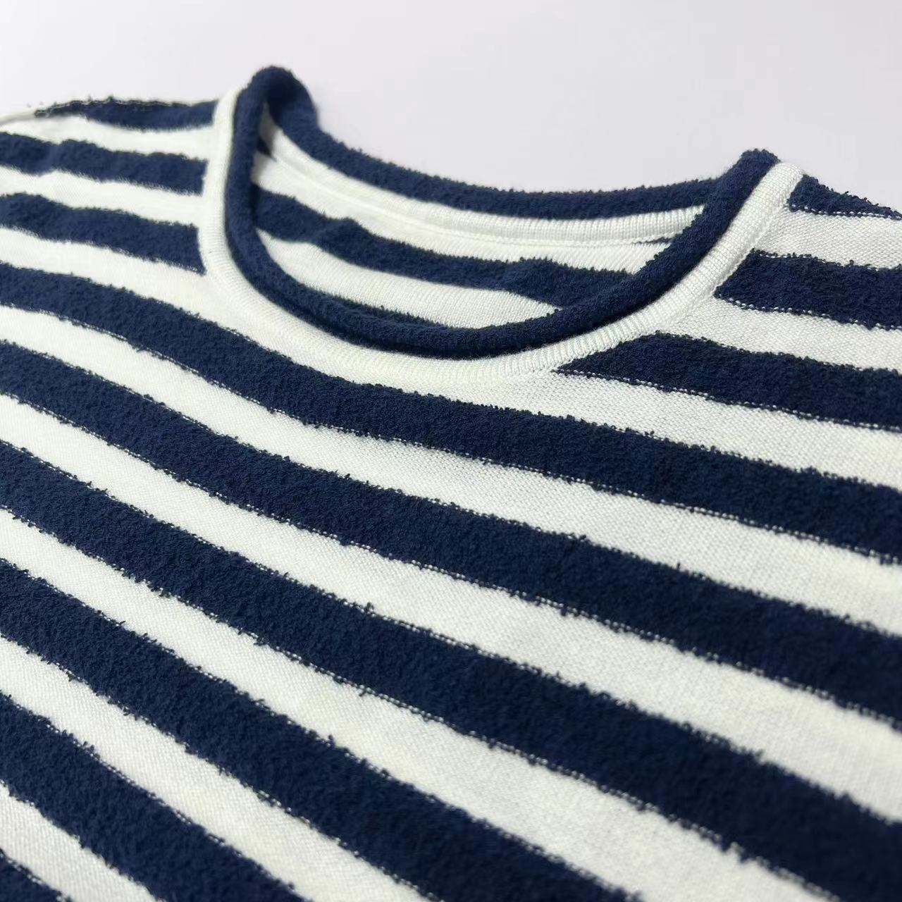 Women's THE ROW Spring Striped Crew Neck Pullover Top Commuter Knitted Sweater