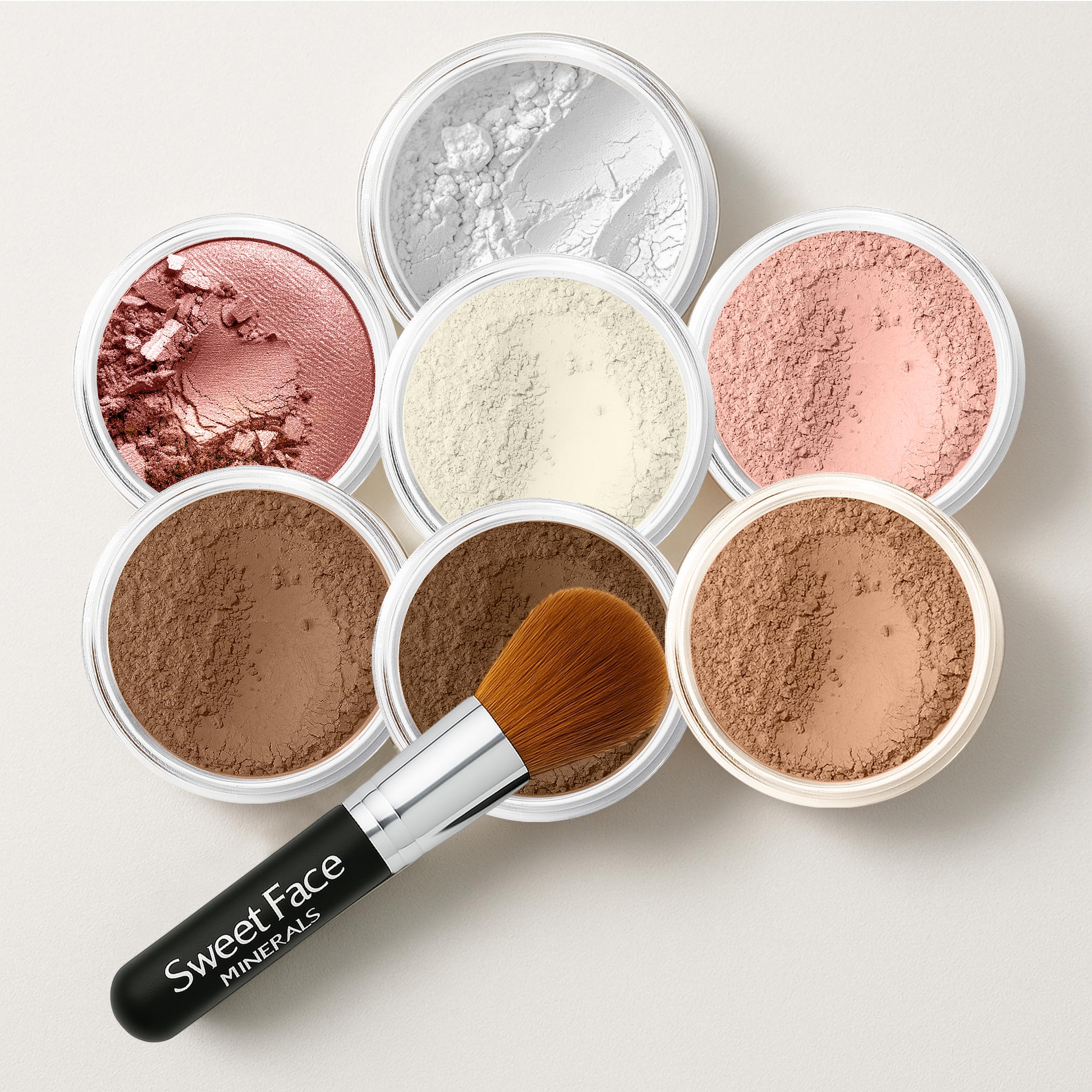 TWO SHADES OF FOUNDATION. Sweet Face Minerals foundations are all natural and very lightweight. Our products never appear heavy or look caked and are wonderful for every skin type. Will not cause irritated itching skin or acne.